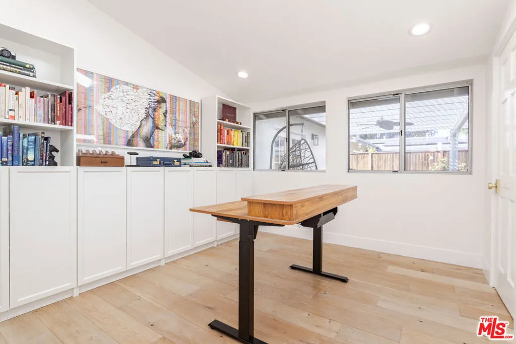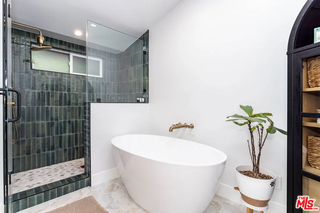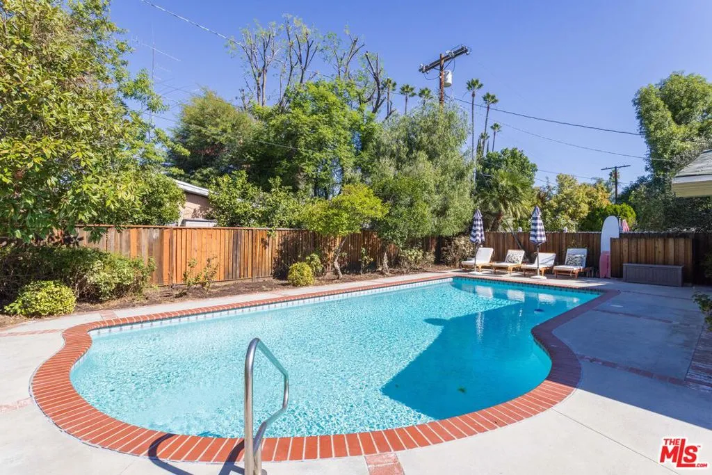 Located in the highly coveted Corbin Palms neighborhood of Woodland Hills, this Mid-Century Marvelous pool home was designed by renown Architects Dan Palmer & William Krisel and built by The Alexander Construction Company. Before Palmer & Krisel went on to design thousands of homes in Palm Springs forever influencing the cities modern look, they designed Corbin Palms right here in Woodland Hills. Their designs emphasized simplicity, privacy with functionality and a profound respect for the natural landscape. This residence embodies clean lines, natural lighting with modern upgrades for the best of today’s California living and entertaining. The moment you step through the dramatic double door entry you will be in awe of the vaulted ceilings and natural light cascading in from the double pane windows and skylights while showcasing the recently remodeled modern aesthetic. New drywall coating with interior paint, Tasteful engineered hardwood flooring and recessed lighting throughout the living spaces. Gorgeous kitchen featuring new soft close cabinetry with quartz countertops, floating shelves, spacious pantry, tile backsplash with LG and Samsung stainless steel appliances. Open, light and bright floorplan offers a formal living room with floor to ceiling tiled gas fireplace, large dining area and huge family room with dry bar and French Doors that seamlessly connect to the private backyard. New artificial turf, covered pergola and sparkling swimming pool will make you feel like you’re on vacation every day. Designer inspired Primary suite opens to the outdoor living space and is both simple and luxurious with its neutral double sink vanity, Delta brushed brass hardware, tastefully tiled flooring and shower with frameless glass and freestanding soaking tub. Dual closets including a Custom walk-in modular closet system. Two additional bedrooms with engineered hardwood flooring, vaulted ceilings, skylights and Jack and Jill access to an updated bathroom. More new features include exterior paint, water heater, double front doors, Nest thermostat, recessed lighting, fixtures, electrical outlets, switches and pool filtration system. Walking distance to the new Haynes Street Greenway which features California Native vegetation and trees, a walking path, seating areas, perimeter fencing with a decorative entry gate and a security system. Conveniently located near restaurants, shopping, The Westfield Topanga Village, Warner Center, public transportation and more!