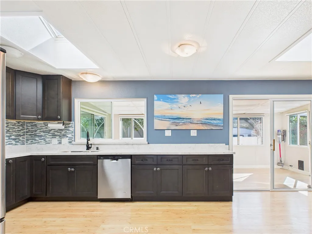 This fully upgraded home is located in the desirable Huntington Shorecliffs community of Huntington Beach. The property offers strong curb appeal with a welcoming front porch, a covered carport, and convenient guest parking nearby. Inside, the home features a spacious and functional floor plan with a large living area that flows into the remodeled kitchen, dining space, and enclosed sunroom—ideal for comfortable everyday living or entertaining. The kitchen includes modern updates, while a half bath and laundry area are conveniently located nearby. Both bedrooms are well-sized, including a primary suite with a walk-in closet and private bathroom. The outdoor space offers a private and well-maintained setting with a large covered side porch, patio, and yard areas. Huntington Shorecliffs residents enjoy a prime location with a pedestrian gate providing direct access to Pacific City and the beach. Community amenities include two pools, spas, a clubhouse, fitness center, billiards room, and poker room, offering a complete coastal lifestyle in one of Huntington Beach’s most established manufactured home communities.