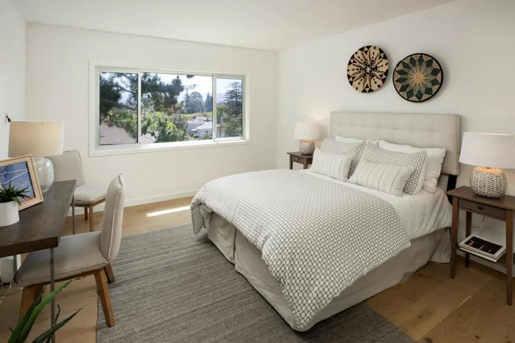 Stunning Condo in Downtown’s Most Iconic Mid-Century Building. Enjoy Sunset views from this truly special home located in Everett House, a 6-story,16-unit mid-century modern beauty standing perfectly preserved amidst Palo Alto’s evolving landscape. A building like this simply would not be built today. Residence 5B is spacious, private, elegant, w/ large deck, ample storage, and remodeled throughout. This home boast a superior location in the complex w/no units above the living space and unobstructed views reaching to Stanford campus and the hills beyond. Two very large bedrooms PLUS bonus room-perfect for home office, nursery, gym. Fantastic master suite has floor to ceiling windows. Remodeled bathrooms are gorgeous, w/ imported tiles, fixtures, stunning Thassos marble. Building boast large grounds, dramatic oversized lobby, large swimming pool, cabana. OWNERS PAY NO UTILITIES- ALL INCLUDED IN HOA