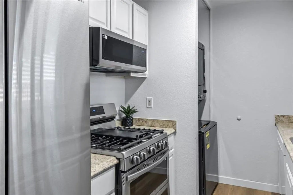 Welcome to your cozy Salinas retreat! This charming 1-bedroom, 1-bath home offers comfort, convenience, and a fantastic location in the heart of vibrant Salinas. Featuring 585 sq ft of thoughtfully designed living space, its ideal for first-time buyers, downsizers, or anyone seeking a low-maintenance lifestyle. Step inside to a bright, open living area that flows seamlessly into the dining space, creating the perfect setting for relaxing or entertaining. The kitchen includes a modern oven range and offers a functional space for your culinary creations. The spacious primary suite features a walk-in closet and plenty of storage. Enjoy the convenience of in-unit laundry with washer and dryer included, and central forced-air heating for year-round comfort. Take advantage of the sparkling community pool, perfect for unwinding and enjoying sunny Salinas days. Located within the Salinas City Elementary School District and offering a garage space for parking and storage, this delightful home combines practicality, comfort, and lifestyle appeal. Move-in ready and waiting for you to call it home!