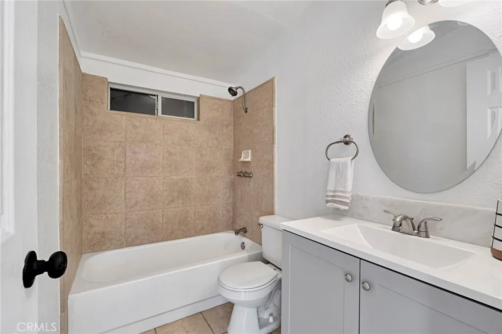 Enter inside to a spacious living room with tall ceilings and plenty of natural light. The eat-in kitchen has been tastefully remodeled with new countertops, cabinets, and modern appliances, perfect for family meals and entertaining. The home also features tile flooring, updated lighting, and newer dual-pane windows throughout for energy efficiency and style.