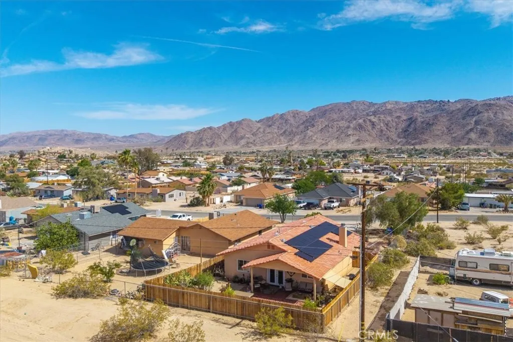 Welcome to this charming 3-bedroom, 2-bathroom tile home in the heart of 29 Palms! This residence has been cared for, boasting modern finishes and an inviting atmosphere. Enjoy the benefits of PAID SOLAR energy, providing sustainable living while reducing your utility costs. The fenced yard offers privacy and ample space for outdoor activities, perfect for pets or entertaining guests. With its convenient location and thoughtful upgrades, this home is a wonderful opportunity for comfortable desert living. Don’t miss out on making it yours. This has an assumable VA loan with a rate of 2.75%, and seller is willing to help buyer with closing costs.