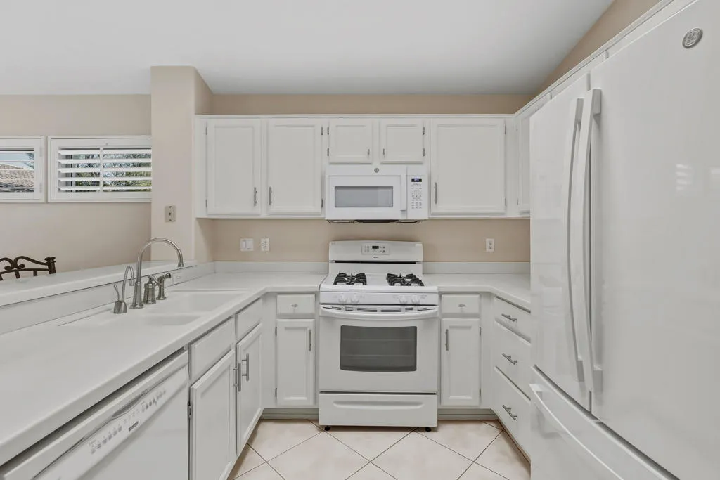 Sun City Palm Desert – Gorham. Ideally located just a short distance from both the Mountain View and Sunset View Clubhouses, this charming home offers comfort, style, and convenience. The north-facing rear yard features a spacious covered patio surrounded by lush desert landscaping–perfect for outdoor relaxation. Curb appeal abounds with a decorative concrete driveway, front courtyard, and coordinated hardscape. Inside, diagonally laid tile flooring extends throughout the main living areas, with shutters on most windows. The kitchen and dining area feature vaulted ceilings, adding to the home’s open and airy feel. The kitchen includes Corian countertops, a breakfast bar, and a skylight for natural light. The dining area has a bay window and a slider leading to the rear patio. The primary suite includes two closets with mirrored wardrobe doors, a vaulted ceiling, and direct access to the covered patio. Its en suite bathroom offers dual sinks, a stall shower, and a Solatube for added light. The guest bedroom has its own slider to the front courtyard and is adjacent to a full bath with a tub/shower combination. Additional features include an interior laundry room and a two-car garage with its own air conditioning and abundant storage space. The home’s main HVAC system was replaced in 2019.