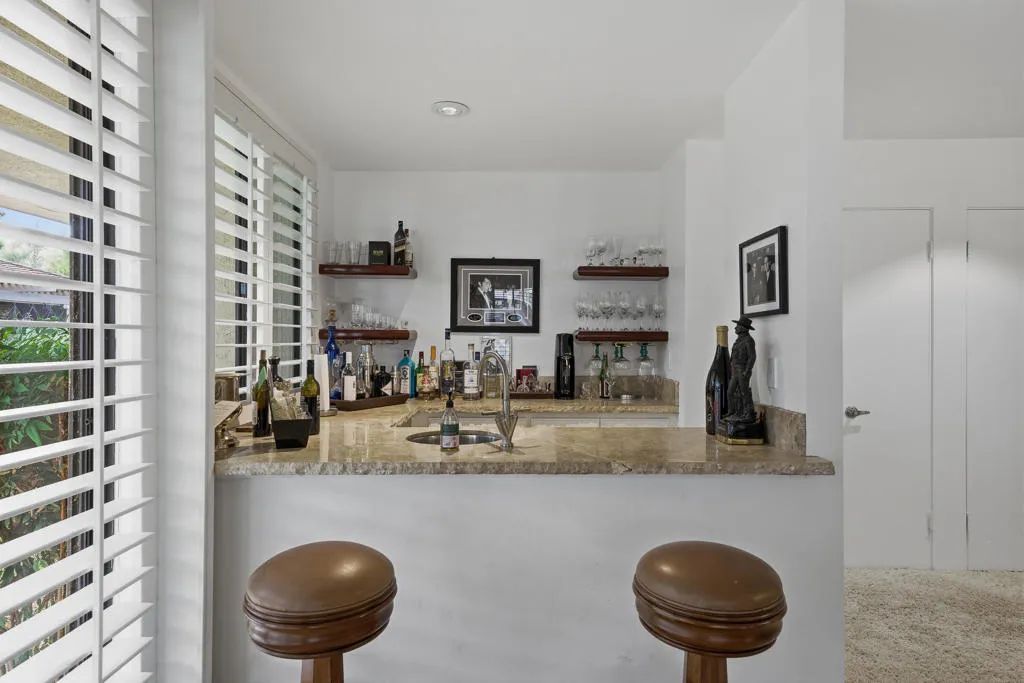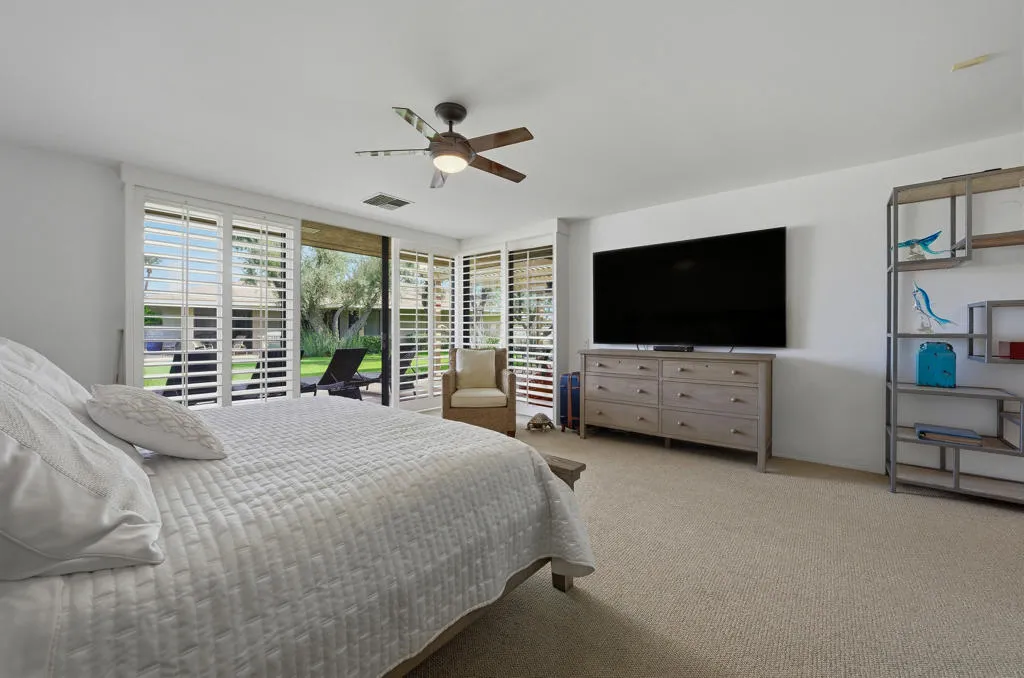This Expanded Broadmoor model welcomes you into relaxed sophistication with 3104 sq ft – 2 dual master suites & 3 en-suite baths. Third bedroom can be used as a bedroom/den/office with Custom built-in Cabinetry. The spacious Livingroom sets the stage for casual desert living & elegant entertaining. Granite counters, Travertine floors, sleek stainless appliances w/ upgraded cabinets that complement this gourmet kitchen. This Spa inspired Primary suite boast style w/ a separate shower, tub with dual vanities and a walk in closet. Take advantage of the back patio with a recently remodeled exterior patio that was expanded for maximum outdoor entertaining space. New Aluma wood patio cover, and new outdoor pavers. great for entertaining and just step to the community Pool. The Springs CC has a beautifully remodeled Clubhouse, newly remodeled golf course and a state-of-the-art fitness center, 46 community pools/spas, 11 tennis courts & private golf course. This prime location in Rancho Mirage is located across from Eisenhower Medical Center, close to shopping and El Paseo drive. The Springs Is where you belong!