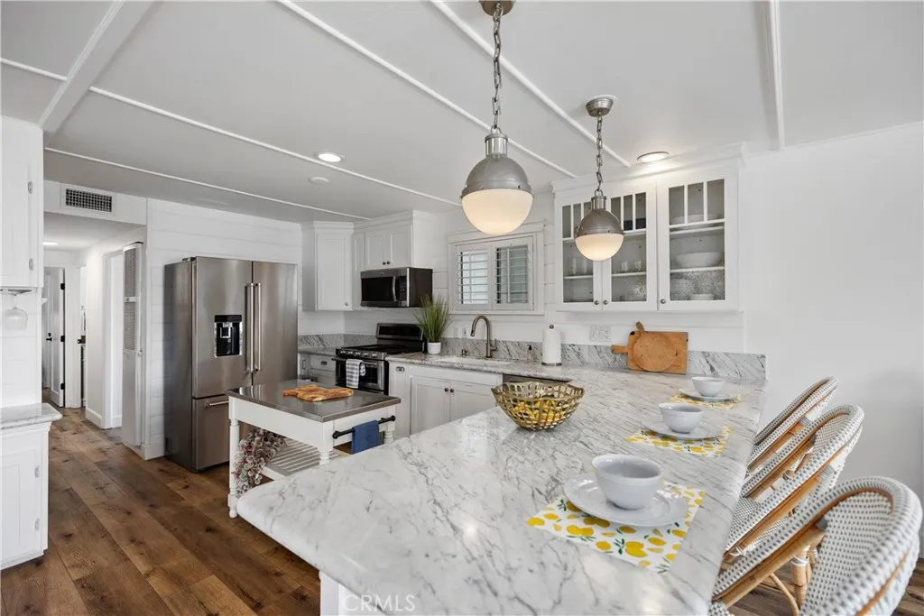 SELLER IS OFFERING A $20,000 DOLLAR BUYER CREDIT…Discover coastal elegance at 264 Mayflower Drive, an inviting sanctuary tucked within Newport Beach’s coveted Bayside Village. This thoughtfully designed two-bedroom, two-bath residence blends comfort and sophistication, offering 960 square feet that lives like 1,200 thanks to its airy, open-concept floor plan. Sunlight fills the living and dining areas, while the kitchen showcases newer stainless steel appliances, generous counter space and a seamless connection for effortless entertaining. Retreat to your serene, private porch and patio, beautifully framed by lush greenery—a tranquil escape ideal for morning coffee, afternoon reading or evening gatherings under the coastal breeze. This home has been updated with central A/C and heat, a separate inside laundry room, covered carport and ample storage which adds both practicality and ease. Here, you’re not just purchasing a home—you’re stepping into an exclusive Newport Beach lifestyle and let’s not forget, there are NO HOA dues or land taxes. Community perks include a private beach, kayak launch, scenic bike trails, two pools, spas, BBQs, fire pits, dog park and two clubhouses—plus year-round events. All this just moments from Newport Dunes, Back Bay and the marina! Every day feels like a vacation in one of Orange County’s most sought-after enclaves.