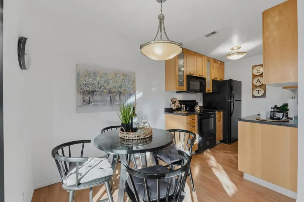 Charming Ground-Floor End Unit in Sought-After Lakeview Terrace Steps from Almaden Lake Park! Welcome to easy living in this beautifully maintained 1-bedroom, 1-bathroom ground-floor end unit. This move-in ready condo offers a bright and open floor plan with a cozy fireplace and seamless flow between living and dining areas.The updated kitchen features refreshed cabinetry, stylish upgraded countertops, and comes fully equipped with a built-in microwave, range/oven, dishwasher and refrigerator. French doors lead to a spacious primary bedroom suite, complete with custom plantation shutters and a tastefully remodeled bathroom featuring a tub/shower combo and upgraded finishes. Enjoy the convenience of a custom built-in closet system with drawers and an in-unit laundry area with a stackable washer and dryer. Step outside to your own private patio, nestled under redwood trees, offering a peaceful retreat with extra storage space. Additional highlights include: designated covered carport parking, ample guest parking, community amenities: pool, spa, clubhouse, bocce ball, and access to Los Alamitos Creek Trail. Close to Oakridge Mall, Whole Foods, Costco & major freeways (85/87). A perfect blend of comfort and convenience!