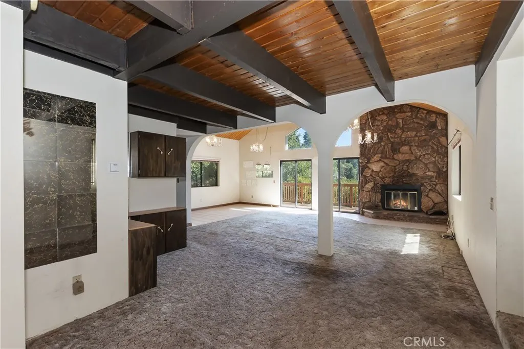 Tucked in the trees, this mountain home comes with the neighboring lot, included, offering over a quarter of an acre of land! Enjoy the ease of level entry, offering an open-concept layout ideal for both relaxing and entertaining. Over 2500 sq ft, featuring expansive living space with seamless flow between the kitchen, dining, and living areas. Entry level includes; loft that is perfect for a home office, hobby area, or guest overflow, 2 Bedrooms, and 1 full bathroom. Second level offers main living space with fireplace, which has access to the back deck, perfect for relaxing and taking in the mountain views. Master and bathroom on second level also. The third level offers a spacious family room with fireplace that provides additional gathering space with access to lower deck, great for more family fun! Laundry room located on the third level also. Additional lot square footage offers room to expand for a possible garage or simply enjoy the added privacy and outdoor space. Decks have been completely redone! Whether you are looking for a full-time residence, weekend escape, or investment opportunity this mountain home has what you’re looking for!