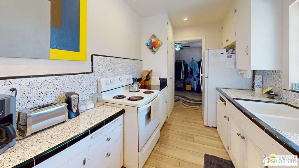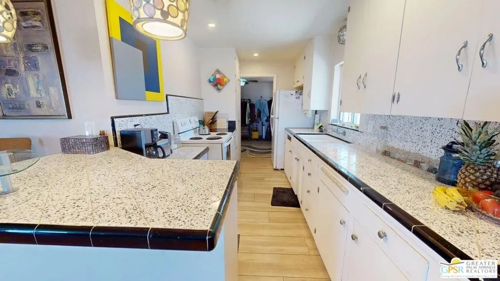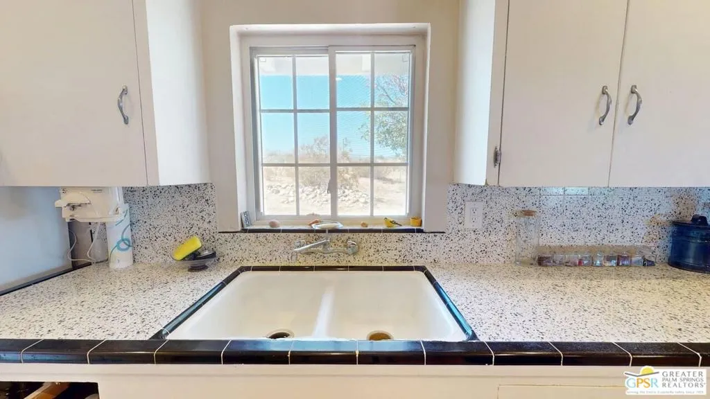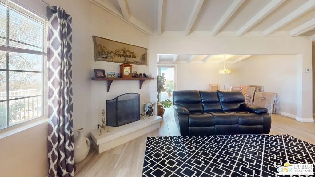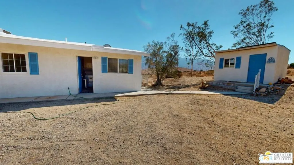 Located off of Highway 62 (between Dillon Road and Pierson Boulevard), and access north to Joshua Tree, this location is just west of the boundary line between Whitewater and Desert Hot Springs. Situated on a hill, the views are stunning and the stars are very bright at night since there are no street lights. The property is divided into two parcels – with approximately 3.1 acres on the west side of Old Morongo Road and 2.2 acres on the east side of Old Morongo Road. The home is located on the west 2.5 acres. The home includes 3 Bedrooms and 2 Baths and has undergone a variety updates over the years. The great room features a fireplace, living and dining areas and access to the patio with the incredible views towards Palm Springs. as well.