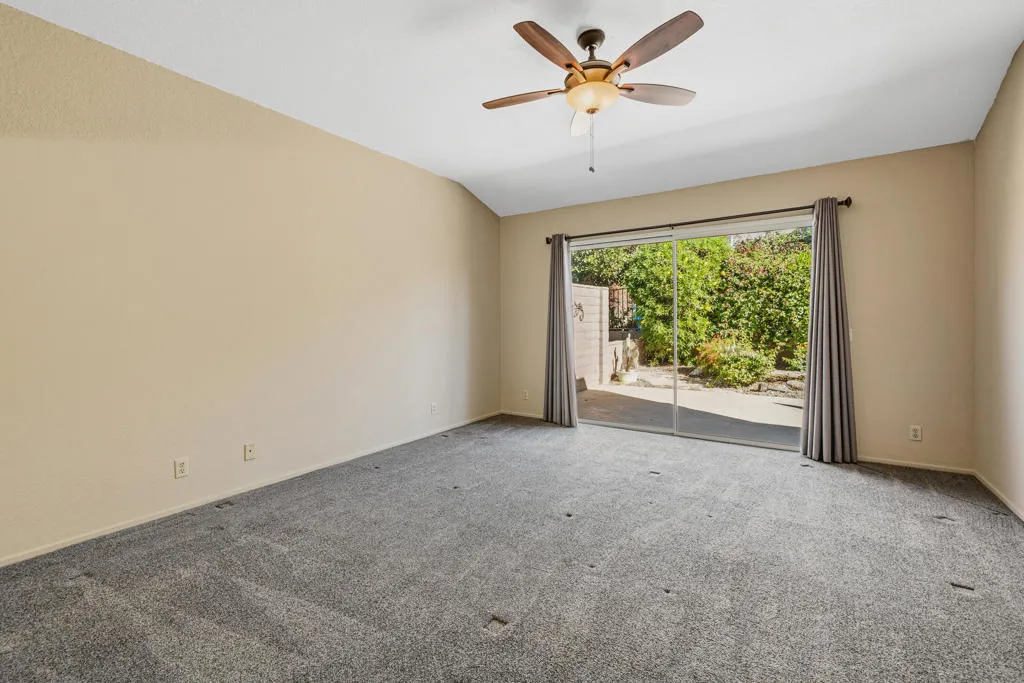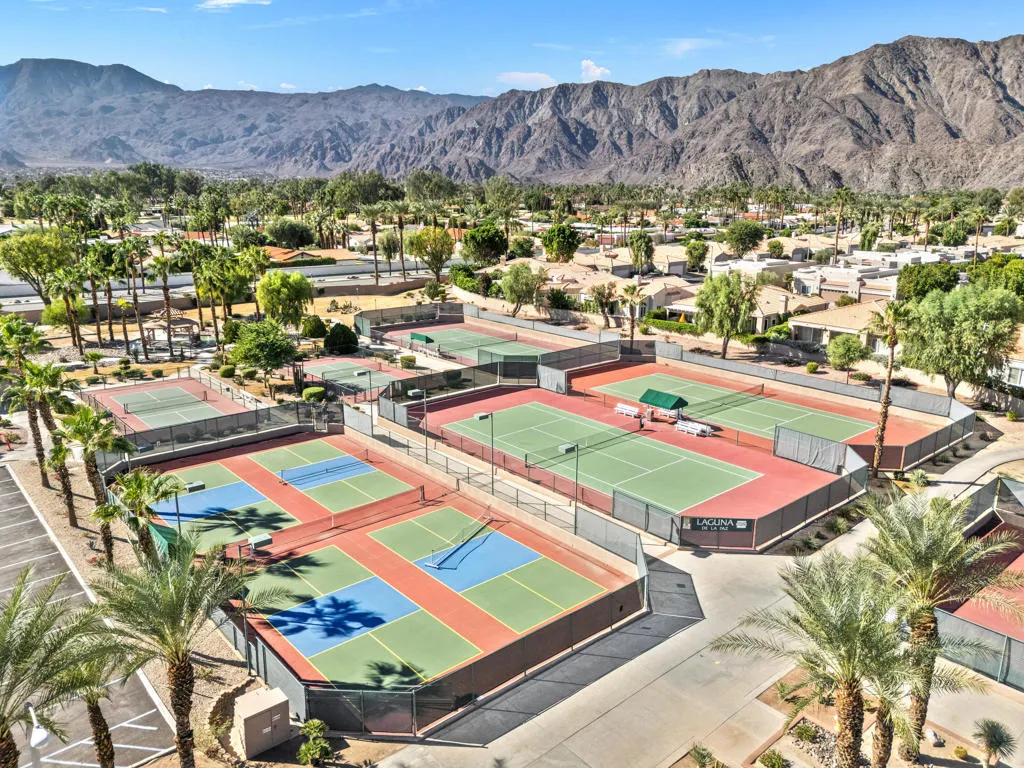 Picture perfect with a stunning quiet interior location. This two bedroom, two bath elevated end unit offers a rare and intimate private oversized landscaped patio with mountain views and walking distance to the pool with direct access and views to luscious greenbelts and pools. Laguna De La Paz features a 7 acre lake with community clubhouse, exercise room, Tennis courts, 15 pools, spas, Pickleball courts, walking paths, and 24 hour gated security. Light and bright living room, dining and a eat in kitchen. Attached 2 car garage with additional guest 2 car parking on your own driveway. Enjoy moving in with nothing to do, or upgrade to your own desires. Close to shopping, dining and entertainment. Enjoy life! Right here and Right now!