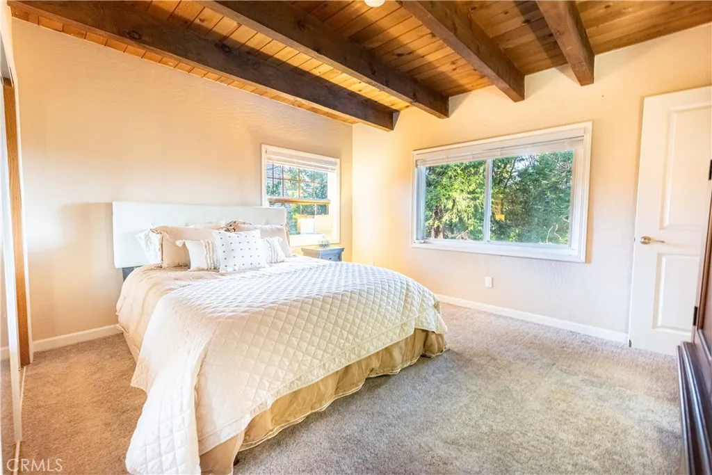 LOCK in a RATE IN THE LOW 5% by using the seller’s closing cost credit to buy down your interest rate. A meaningful long-term savings opportunity. A complete turnkey and approved short-term rental perched amidst the towering pines of Crestline, this enchanting three-story mountain home offers four bedrooms and two baths across 1,544 square feet, creating the perfect blend of family living and alpine getaway. Vaulted, cathedral-style ceilings and striking triangular windows fill the open great room with natural light while framing sweeping forest views, an ideal backdrop for cozy evenings by the fireplace or gatherings that flow out to the spacious balcony for dining and fresh mountain air. The open-concept main level features a well-appointed kitchen with granite countertops and stainless steel appliances, seamlessly connected to the dining and living areas for effortless entertaining. Bedrooms are thoughtfully arranged, with a main-level room offering balcony access and a one-and-three-quarter bath, a charming loft bedroom on the third floor with a private balcony and built-in storage, and two additional bedrooms on the lower level alongside a full bath and laundry hookups. Outside, a tiered wooded backyard provides ample space for pets or play, while parking for 3–5 vehicles makes hosting guests a breeze. Just minutes from Lake Gregory and Lake Arrowhead, and under an hour from Big Bear, this inviting retreat offers easy access to hiking, skiing, and year-round outdoor adventures. Your perfect mountain sanctuary awaits.