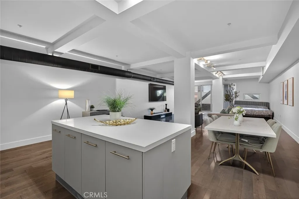 Urban Loft Living with Rare Flexibility at Newberry Lofts on Historic Pine Avenue! Discover the perfect blend of industrial-inspired design, modern comfort, and unmatched layout potential in this expansive 1,140 sq. ft. studio loft located in the coveted Newberry Lofts; one of Downtown Long Beach’s most sought-after boutique buildings. Soaring ceilings, oversized windows, and warm laminate wood flooring create a bright, open atmosphere that defines true loft living. Unlike typical studios, this exceptionally generous floor plan offers rare flexibility, with the ability to easily create a true one-bedroom, or even a two-bedroom configuration, making it ideal for homeowners seeking adaptability, long-term value, or a creative live-work setup. At the heart of the home, the sleek modern kitchen impresses with quartz countertops, stainless steel appliances, gas range, and a large center island, perfectly designed for entertaining, casual dining, or everyday living. A spacious walk-in closet provides ample storage, while the well-appointed bathroom features a tub/shower combination and clean, contemporary finishes. Additional highlights include in-unit laundry, central air conditioning, secure controlled access, and gated subterranean parking, offering comfort and peace of mind in an urban setting. Located in the vibrant core of Downtown Long Beach, Newberry Lofts places you just steps from Pine Avenue’s acclaimed restaurants, cafés, nightlife, art galleries, the Metro A (Blue) Line, Shoreline Village, The Pike, and the waterfront. This is walkable, car-optional living at its finest; where everything you love about city life is right outside your door. Whether you’re searching for a stylish urban retreat, a flexible layout you can personalize, or a smart investment in one of Long Beach’s most dynamic neighborhoods, this unique loft delivers exceptional value, design potential, and an unbeatable location.