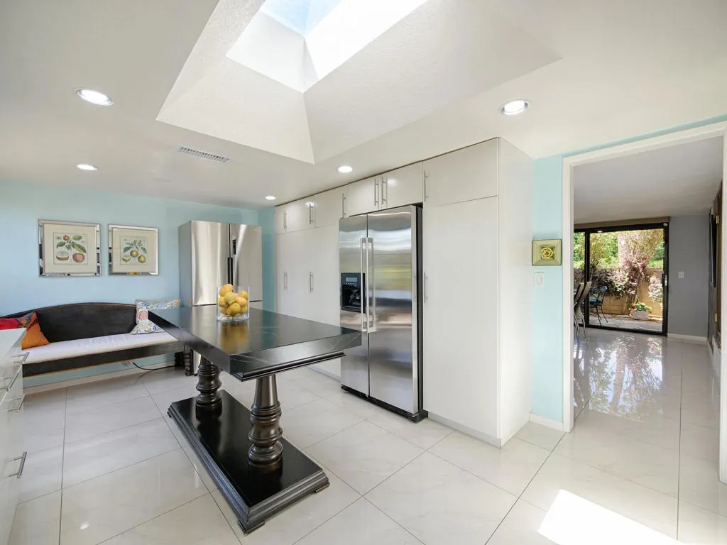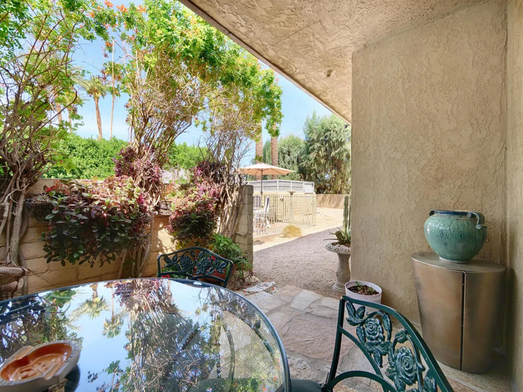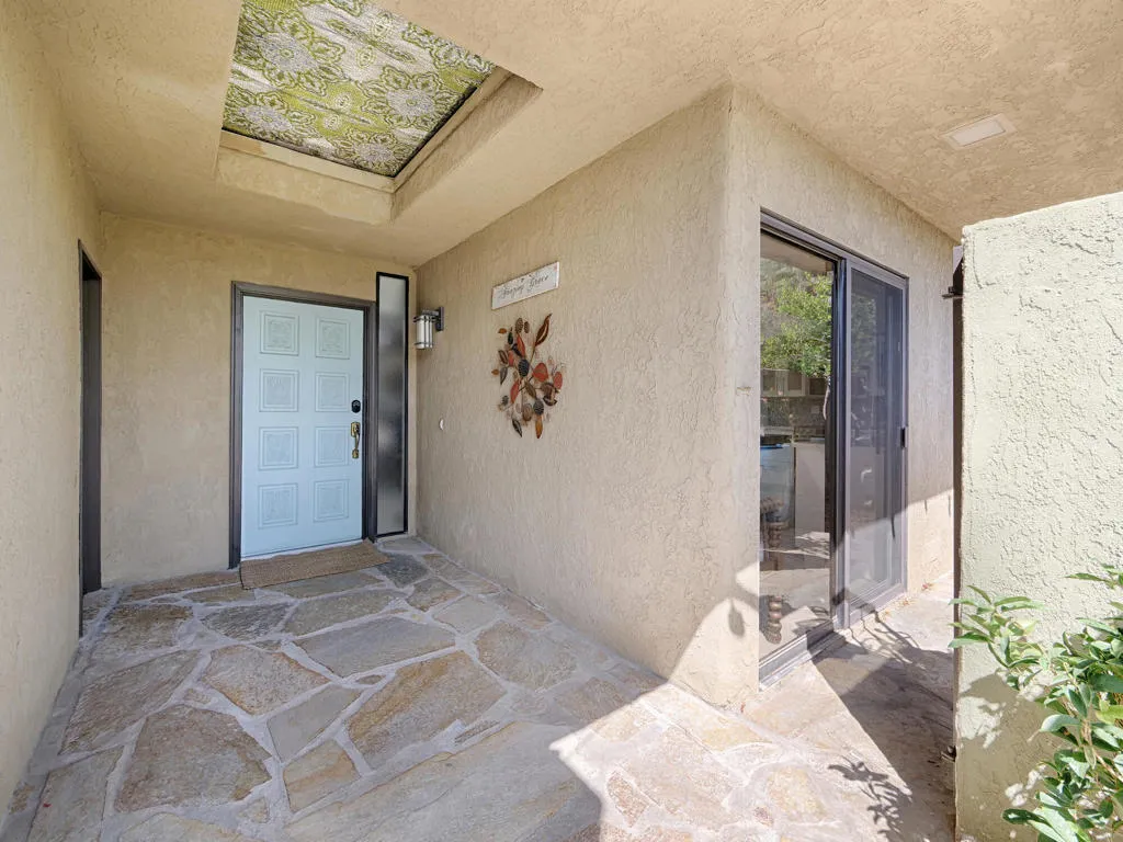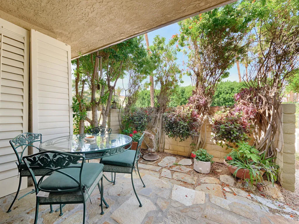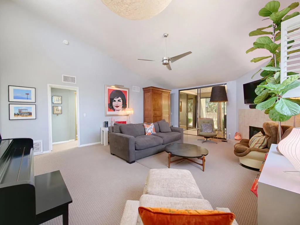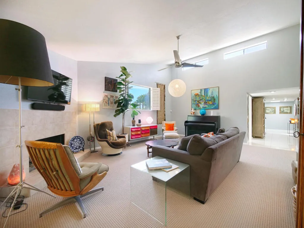 LOCATION, LOCATION, LOCATION!! Excellent South Palm Springs community tucked away in a very quiet private location…But yet close to everything. These units rarely come on the market. Welcome to this beautiful and spacious 2 bed 2 bath STAND ALONE condo that sits in a prime area of the community ..with plenty of space, it’s like having your own yard, offering extra privacy! And you OWN THE LAND! This updated unit with 1832 sq ft of space delivers Beautifully and feels like a single family home The large kitchen has generous cabinets and pantry space with slide outs and soft close drawers. There is a huge skylight and a walk out patio for morning coffee and your evening grilling with family and friends. The bedrooms are spacious and nicely separated on opposite sides of the home. The huge living area (great room) has 14 ft ceilings with clearstory windows and a cozy gas Fireplace. There’s also an enclosed Sunroom with Glass wall of windows with its own separate cooling system.. ideal for a work space or Den.The primary suite is very generous space (16×15)with high ceilings, oversized sliders and floor to ceiling picture windows. The primary bath has a large walk in shower, water closet and a huge walk through closet. Guests will enjoy the private bed room with bath and it’s own private courtyard with access to the pool. There is also a patio off the dining room that has access to the pool. This unit has a 2 car garage with the laundry area & plenty of storage. There is an abundance of light with 3 skylights. Palm Oasis has 21 units and 3 pools. It is a fabulous location, walking distance to Trader Joes and shopping with many restaurants close by. Located minutes from the soon to be completed CV Link and across the street from the Twelfth fairway of the Tahquitz Creek Golf Course. About a 10 minute drive to the PS Airport and 15 minutes to DownTown Palm Springs. Don’t miss this Gem!!! Call today for your private showing