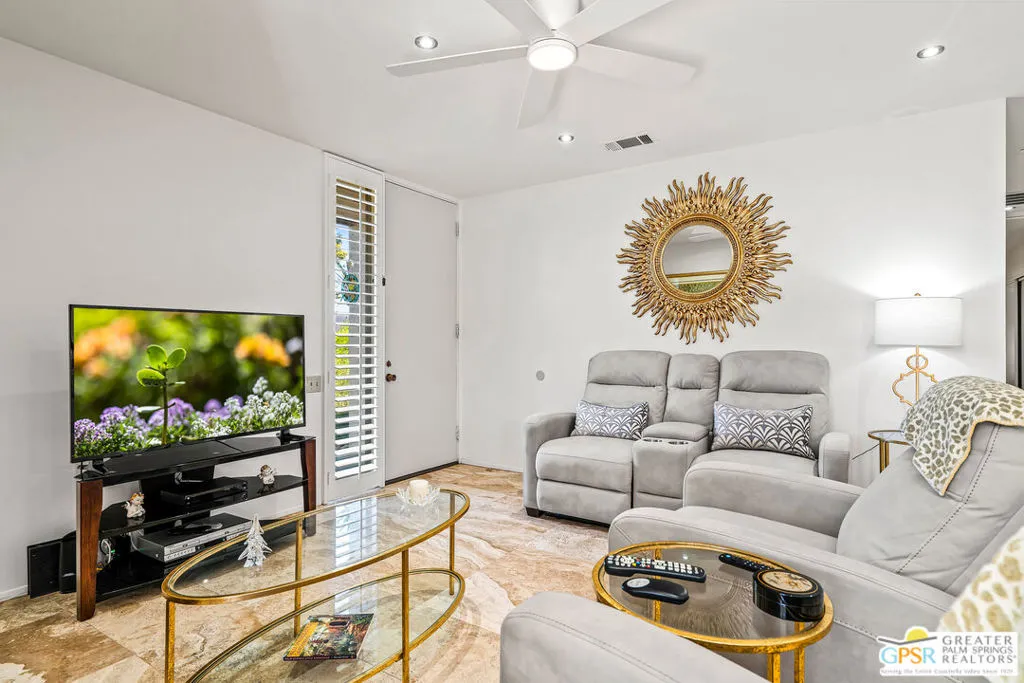 Beautiful William Cody AIA designed condo located in the Palm Springs Country Club, one of the city’s best-kept secrets. This updated architectural condo offers 2 bedrooms and 1 3/4 baths, blending classic mid-century design with modern comfort. The bright and airy living and dining areas feature floor-to-ceiling sliding glass doors that open to a private patio with San Jacinto Mountain views perfect for relaxing and enjoying the quintessential Palm Springs lifestyle. The spacious primary suite includes an en suite bath, while the second bedroom offers a walk-in closet. The updated kitchen boasts granite countertops and LG stainless steel appliances, including a stove, microwave, refrigerator, wine cooler, and full-size washer and dryer. Conveniently situated near parking and the community pool. HOA dues include basic cable and internet. Fee simple land you own the land.