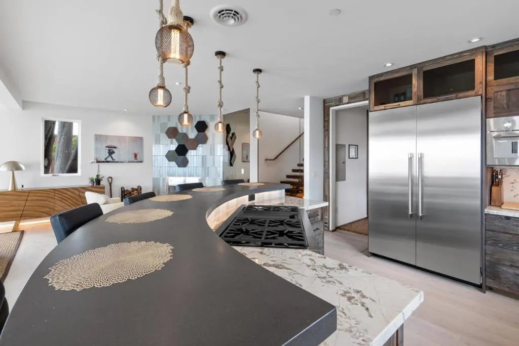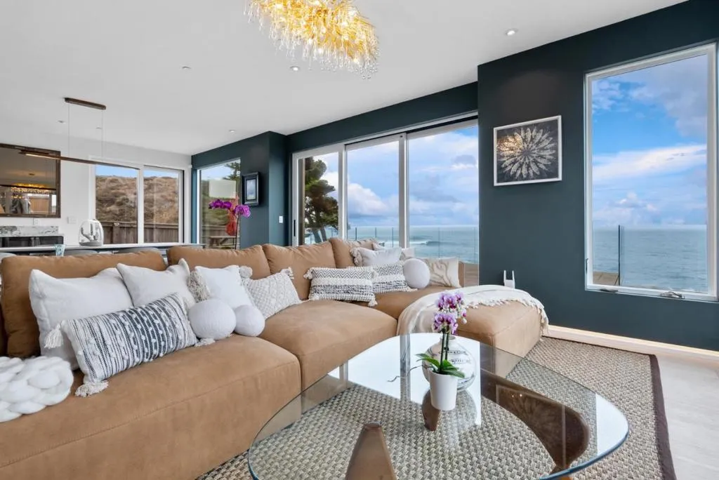 Experience The Landing, designed for those who break boundaries and seek inspiration at the waters edge. Discreetly positioned on one of Northern Californias most exclusive stretches of coastline where homes rarely become available, this modern beach sanctuary is just ten minutes from Santa Cruz’s vibrant tech and surf scene, one hour from SFO, and literally steps from the Pacific. Legendary surf breaks flank both sides of your private backyard, making it effortless to slip out for a dawn session or host board meetings on the sand. Every room in this 5-bedroom, 4 full and 2 half-bath masterpiece is enveloped by panoramic ocean views and filled with the sounds of saltwater and wildlife. This timeless, whimsical state-of-the-art design features a walk-in pantry, climate-controlled wine wall, immersive home theater, radiant floors, and smart lighting with over 176 programmable options for every mood. The homes custom woodwork, made from reclaimed redwood, honors the past while curating an atmosphere of bold possibility. The expansive, modern kitchen and open living spaces are playgrounds for private indulgence or dynamic gatherings, while a Zen garden adds tranquility just steps from the surf. Approved plans included for a two+ car garage and artist loft above with ocean views.