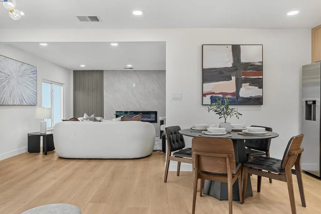 Welcome to this stunningly remodeled single-story home in Fremont’s highly desirable Sundale neighborhood. Blending elegant modern design with everyday functionality, this 3-bedroom, 2-bath residence offers the perfect balance of style, comfort, and convenience. Step inside to a bright open-concept layout featuring fresh interior and exterior paint, new recessed lighting, and a striking accent wall with a sleek modern fireplace—setting the tone for cozy evenings and effortless entertaining. New luxury vinyl flooring flows seamlessly throughout, creating a warm and cohesive ambiance. The fully remodeled kitchen showcases brand-new stainless-steel appliances, quartz countertops, modern cabinetry, kick-toe LED lighting, and a distinctive range hood beneath a tray ceiling. Both bathrooms feature LED mirrors, stylish vanities, and designer finishes. Enjoy the newly landscaped yard—perfect for relaxing or entertaining. Conveniently located near top Fremont schools, BART, shopping, dining, and commute routes, this turnkey home delivers modern luxury at its finest.