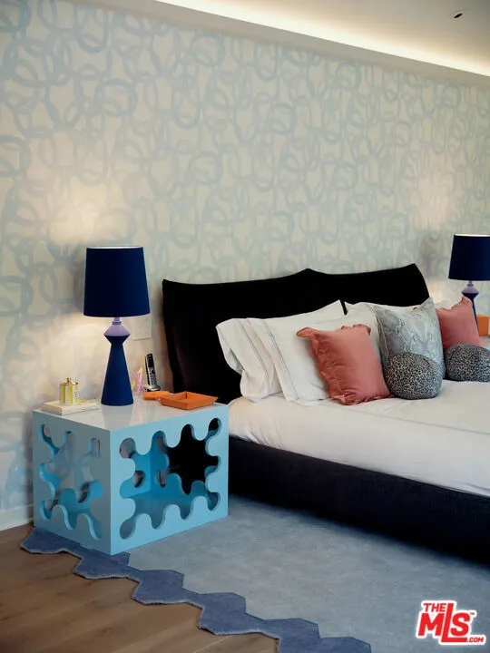 Beverly Hills Tennis Estate property unlike anything you’ve seen, hidden behind walls, gates & mature trees on over an acre of perfectly manicured park-like grounds in the prime foothills of Beverly Hills. Hosting a rich & elite Hollywood pedigree, up a long driveway on a knoll basking in the sun, sits this entirely reimagined home, colorfully curated by designer Angie Socas Coppel. Each room with its own joyful, lively and inspiring theme with an open floor plan with multiple spaces for entertaining. The main floor features large living spaces, a renovated chef’s kitchen with family room, staff quarters and office opening to an outdoor lounge, with Dining and Living rooms opening to the pool and grounds. The 2nd-story consists of three generous bedrooms plus a full primary suite with separate office, lounge, dual bathrooms, dual walk-in closets & French doors that open to a private terrace overlooking the stunning grounds. The sprawling grounds hold a guest house, fully equipped gym, a large pool with separate spa, sauna and a serene, private & sunken championship tennis court. The motor court has parking for up to 25 cars and the property is dialed in with a smart house system, full cameras & security complete with hotel like amenities throughout. A prime compound in one of the world’s most desirable locations.