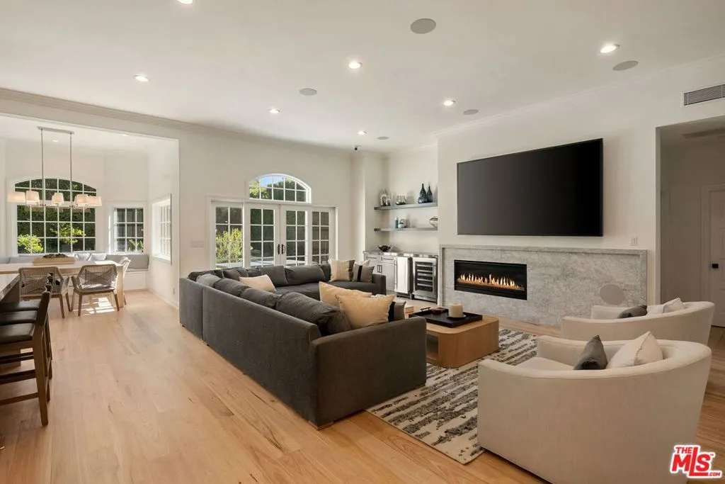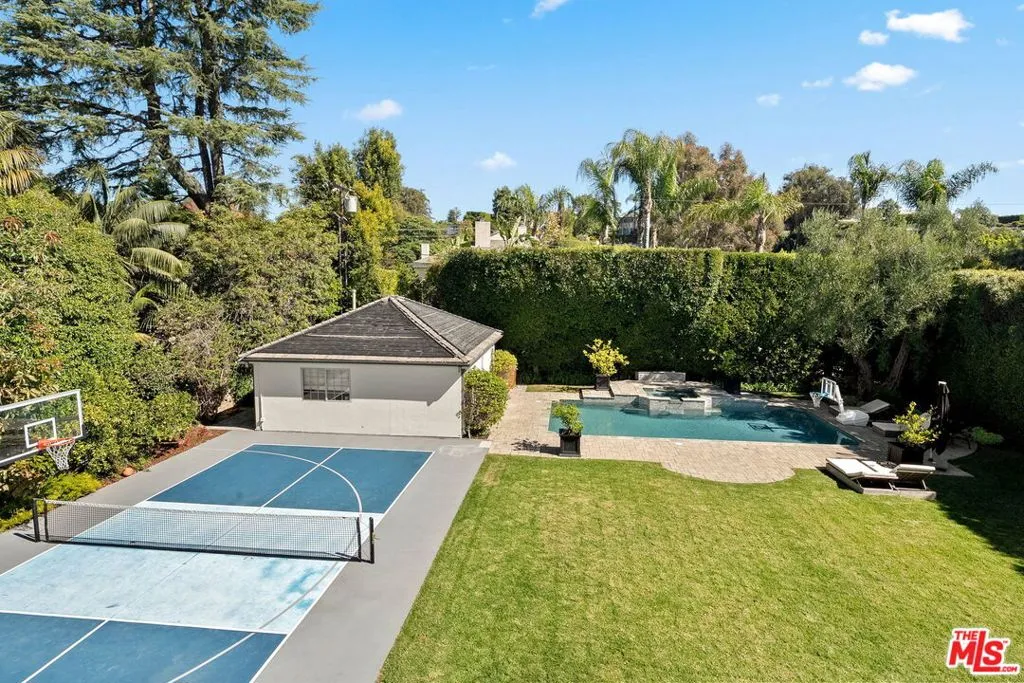 Located on one of Brentwood’s most desirable streets, Homewood Road, this newly reimagined estate combines refined design with relaxed California living. Extensively renovated by the current owner, the residence offers approximately 6,800 sq. ft. of living space on an expansive 18,359 sq. ft. flat lot. A grand double-door entry opens to a light-filled foyer with soaring 23-ft ceilings, setting the tone for the home’s bright and open layout. The main level features a formal dining room with garden views, a dedicated theater, and a stunning great room where a double-island chef’s kitchen flows seamlessly to the family room and outdoors. The kitchen is outfitted with custom wood cabinetry, marble countertops, professional-grade appliances, and a walk-in pantry. A breakfast nook surrounded by windows overlooks the pool and gardens. Two spacious bedrooms and a full laundry room complete the main floor. Upstairs are four en-suite bedrooms, each with walk-in closets, including a luxurious primary suite with private sitting area, office, and dual walk-in closetsone currently used as a fitness studio. The resort-style backyard offers a sparkling pool and spa, multiple lounging areas, lush landscaping, and a generous lawn. Additional highlights include a private pickleball court and a fully permitted two-bedroom, one-bath guest house with its own laundry. Situated within the Kenter Canyon Elementary district and surrounded by Brentwood’s finest estates, this exceptional property embodies timeless elegance, modern comfort, and an desirable place to call home.