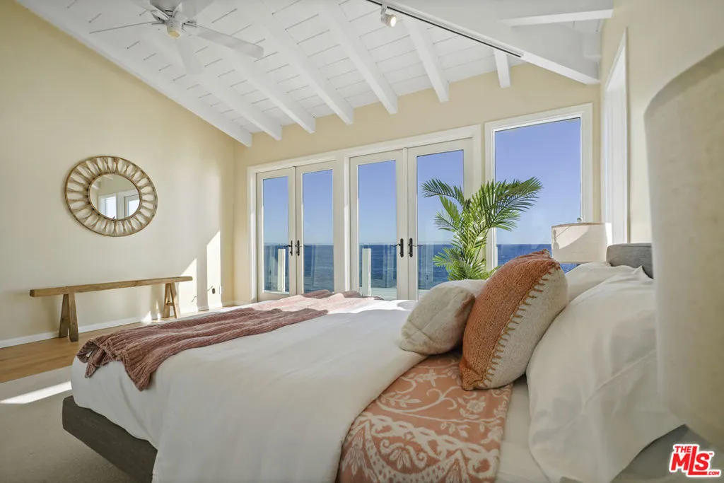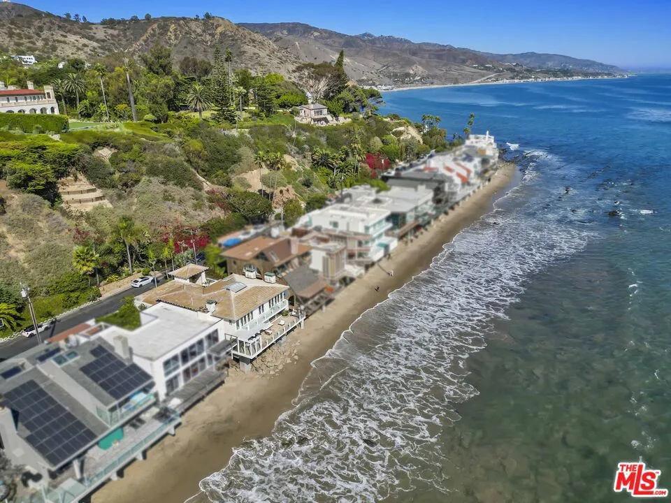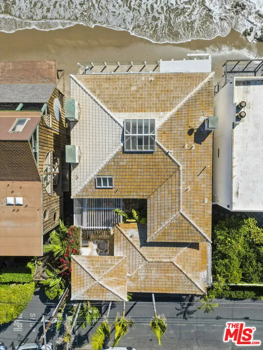 Enjoy the art of beachfront living in this elegant five-bedroom home, ideally situated on a guard-gated street for the ultimate in exclusivity and peace of mind. A serene courtyard entry welcomes you into a covered loggia with a soothing spa, outdoor fireplace, and lush greenery creating a tranquil oasis before you even step inside. Upon entering, rich hardwood floors flow seamlessly throughout the home’s sunlit, open-concept layout. Both the living and family rooms feature fireplaces, sweeping ocean, coastline and city light views, opening directly onto an expansive seaside deck with a fire pit perfect for effortless entertaining and sunset gatherings. The main level includes a private en-suite bedroom with its own entrance, ideal for guests. Upstairs, the oceanfront primary suite offers a private balcony, fireplace, and walk-in closet, creating a true sanctuary with panoramic views of the Pacific. Three additional bedrooms complete the upper level, each bright and spacious. Three additional bedrooms complete the upper level, and all feature vaulted, beamed ceilings that enhance their bright, airy, coastal charm. Set directly on the sand, the entertainer’s deck offers direct access to the water’s edge and your own charming surf shack. Modern comforts include an electric car charger, a three-car garage, and additional private parking. Blending luxury with relaxed coastal living, this home perfectly captures the essence of life at the beach.