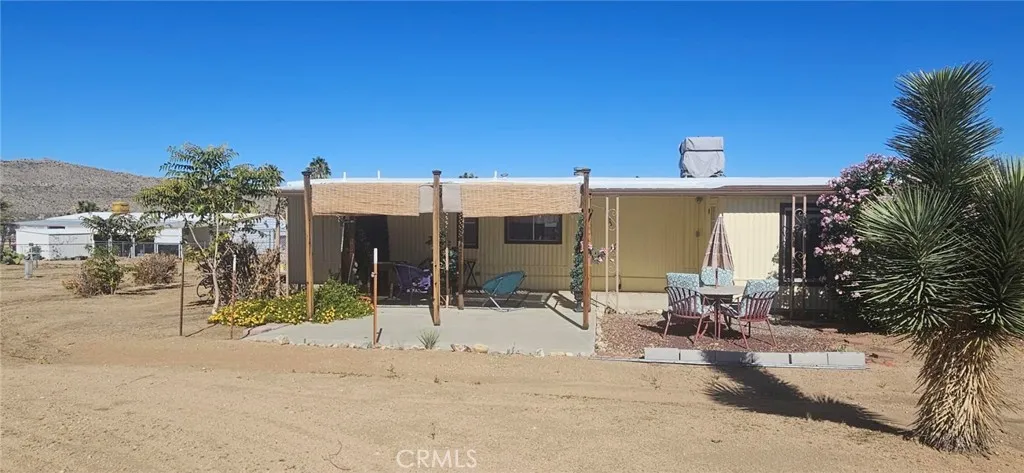 Welcome home to your well-maintained single-wide 2 bedroom, 2 bath home with pop-out hybrid design located in the desirable Gates of Spain Mobile Home Park in Yucca Valley. This home sits on a spacious lot at the end of a quiet cul-de-sac that offers privacy, open space, and beautiful views of mountains and Joshua trees. Features include a large backyard, private patio with tasteful landscaping, two-car carport, and two storage sheds. There’s also a built in dry bar that can be used for entertaining or extra storage. Recent updates include a new mini split system, new low-flow toilet in guest bath, freshly painted exterior, and repainted kitchen. All heating and cooling units are fully functional. Move-in ready with comfortable living spaces, desert views, and a peaceful setting in one of Yucca Valley’s most sought-after 55+ communities. Please call park manager to confirm qualifications for the park.