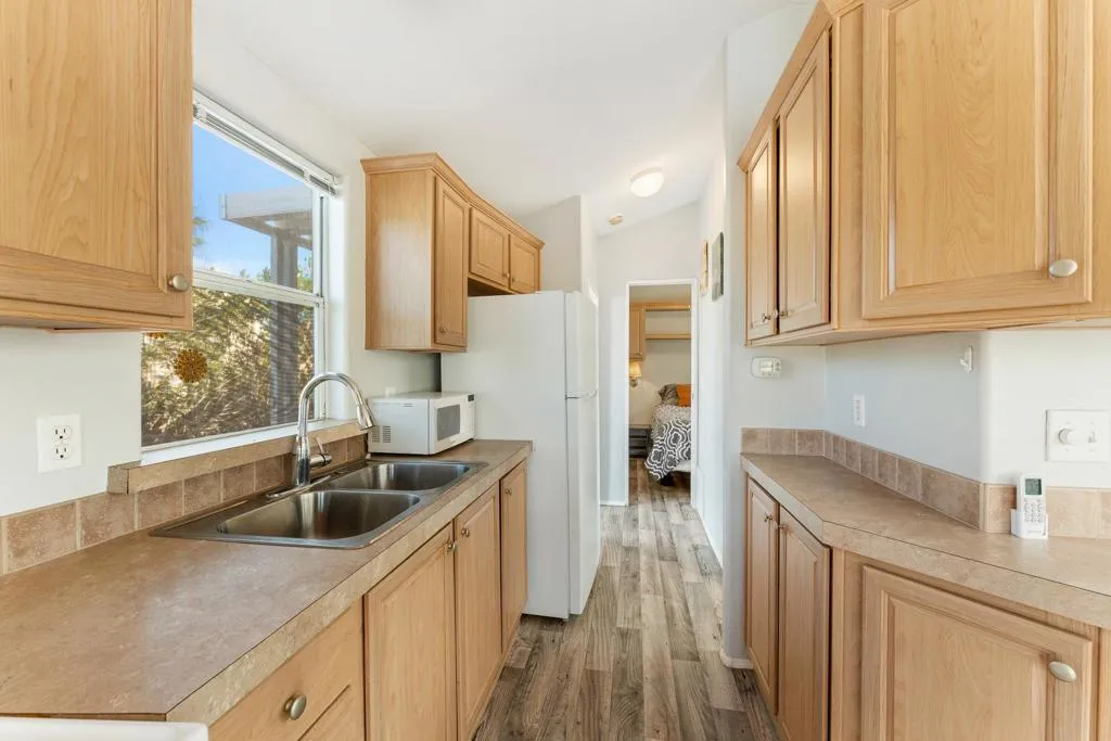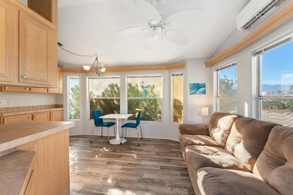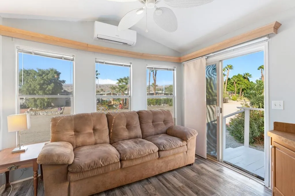 Welcome to The Sands RV & Golf Resort!Discover comfort, style, and resort living in this 2008 one-bedroom, one-bath park model–one of the newer homes in the community and beautifully maintained. Nestled along the wash for added privacy and natural desert views, this home captures the essence of easy desert living.Inside, you’ll find an open and bright floor plan with large windows that fill the space with natural light. The living area offers scenic views and a relaxing atmosphere, while the kitchen provides plenty of cabinet storage, ample counter space, and full-size appliances. The bedroom features built-in cabinetry, mirrored closets, and added shelving for organization. The bathroom includes a walk-in shower and extra storage space, creating a practical and functional layout.Enjoy year-round comfort with the energy-efficient mini-split system, keeping the home cool through the summer and warm in the winter. Outside, unwind under the covered porch and take in the peaceful desert scenery surrounded by mature landscaping.Living at The Sands RV & Golf Resort means access to resort-style amenities including a 9-hole golf course, multiple pools and spas, tennis and pickleball courts, horseshoe pits, shuffleboard, a fitness center, and a clubhouse with social events and activities. Water and trash are included in the monthly space rent for added convenience.Perfect as a seasonal escape, full-time residence, or investment opportunity, this home offers the ideal balance of affordability, comfort, and lifestyle.Motivated seller–contact today to schedule your private showing.