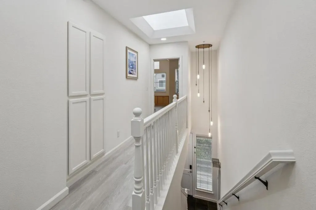 Move-in ready. This stylish 2-story home offers a bright open floor plan with elegant living and dining areas featuring bamboo floors, high ceilings, crown moldings, recessed lighting, and a cozy fireplace. The updated kitchen shines with granite counters, stainless steel appliances, a breakfast bar, and abundant cabinetry. Private patio with mature maples is perfect for relaxing or entertaining. Two spacious en-suite bedrooms upstairs with vaulted ceilings and skylights, including a primary suite with a walk-in closet and dual-sink vanity. Laundry room, dual-pane windows, 1-car attached garage + assigned parking. Beautifully maintained Pacific Parc grounds close to downtown Menlo Park, Palo Alto, Caltrain, Meta, parks, and Willow Oaks Park access.