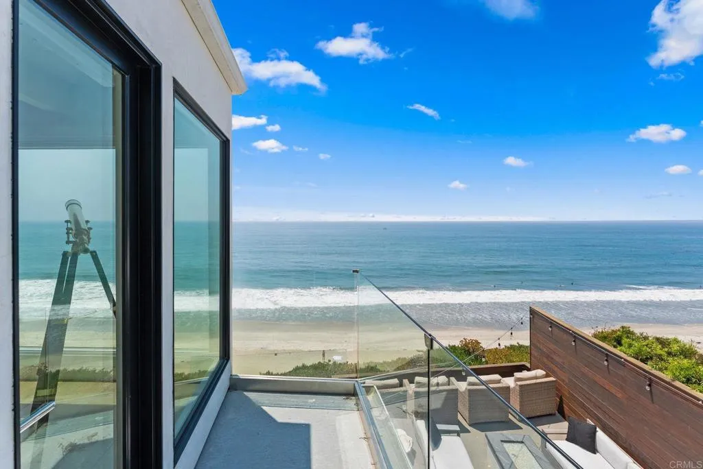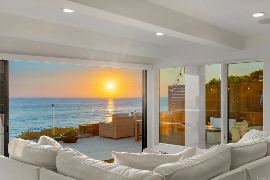 Experience coastal living at its finest in this fully furnished bluff-front home, where panoramic ocean and whitewater views fill nearly every room. Ocean breezes and golden sunsets pour through the floor-to-ceiling windows, creating a light, airy atmosphere that’s both invigorating and serene. Available for up to 12 month stays, this 2018-remodeled residence is the perfect luxury coastal retreat—whether you’re dreaming of a vacation on the bluff, need a comfortable home while remodeling, or are seeking a long-term getaway to fully embrace the North County lifestyle. The open layout flows effortlessly from the living spaces to the outdoors, inviting you to relax by the fire pit, host dinners on the built-in BBQ, or soak in the jacuzzi overlooking the Pacific. The upstairs primary suite offers sweeping 180° views, a private wet bar, and a tranquil space to start and end your day. Just steps from beach access and minutes to the best of Solana Beach, this turnkey home is ready—just bring your suitcase and settle in.