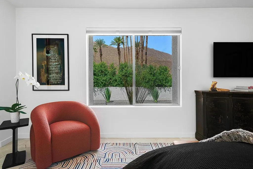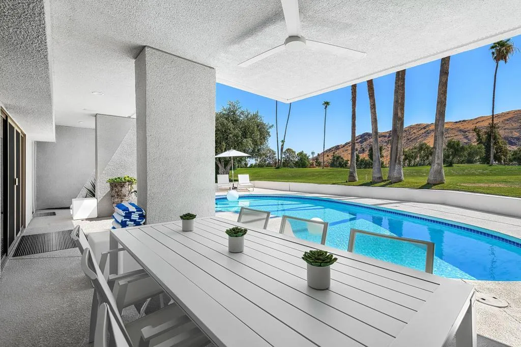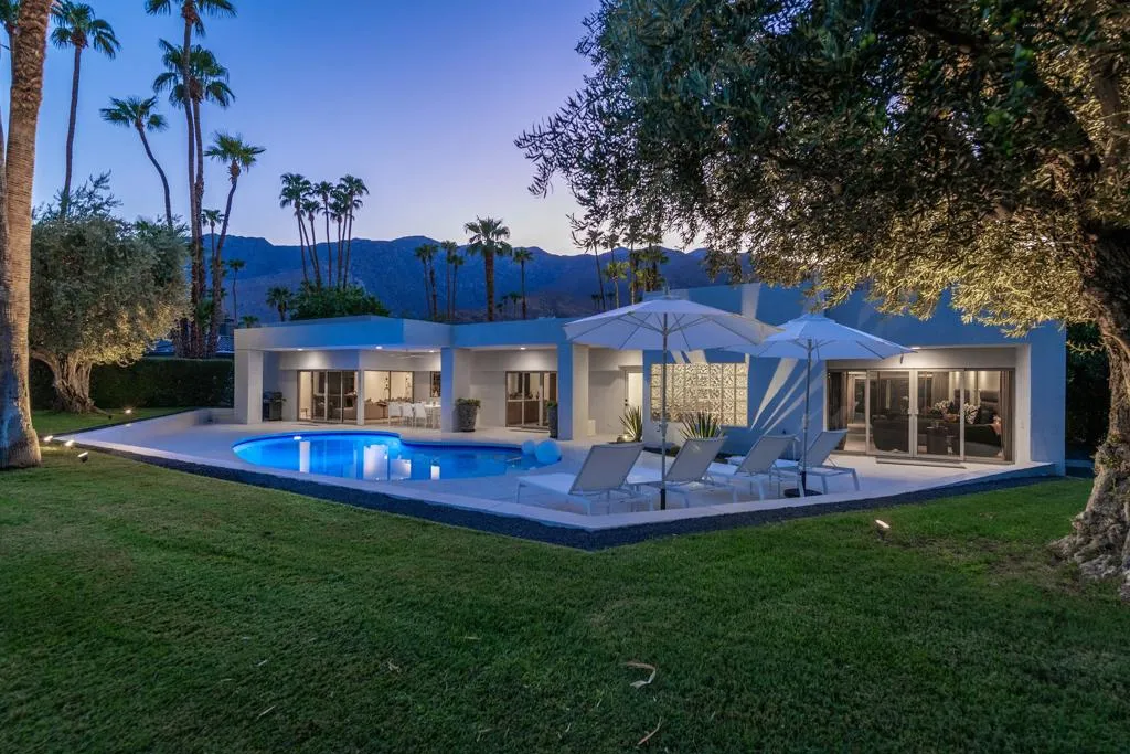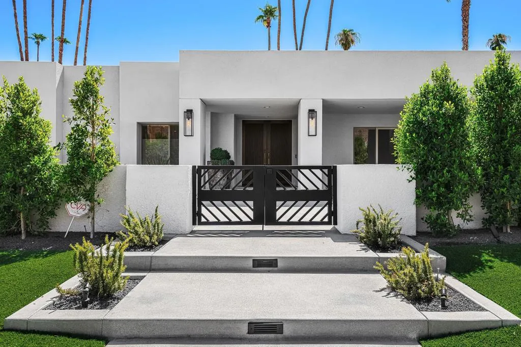 Set against the dramatic backdrop of the Santa Rosa Mountains, this striking white modern residence offers serene golf course vistas and an atmosphere of tranquility within a beautifully maintained community.From the moment you arrive, the home’s captivating curb appeal and lush, sculpted landscaping create an unforgettable first impression. Iconic double entry doors open to an interior that masterfully blends sleek modern design with effortless livability. The inviting living room, anchored by a travertine fireplace, sets the stage for elegant entertaining or quiet evenings by the fire.The formal dining room frames picture-perfect views of the mountains, golf course, pool, and spa an exquisite setting for dinner parties and gatherings. Adjacent, the chef’s kitchen is a culinary dream, appointed with premium appliances, a center prep island, quartz countertops, and a casual dining bar ideal for morning coffee or relaxed meals. Flowing seamlessly from the kitchen, the spacious family room offers the perfect retreat after sun-drenched days spent lounging by the pool or soaking in the spa amidst the resort-style backyard.Perfectly situated near world-class dining, shopping, golf, and hiking, this residence places you at the very heart of the Palm Springs lifestyle. After a day of exploration, unwind in the luxurious primary suite where every detail has been thoughtfully curated for comfort and style. Two beautifully appointed guest rooms ensure your visitors feel equally at home.An attached garage adds everyday convenience, completing this impeccable desert retreat a harmonious blend of luxury, sophistication, and ease. Once here, you may never want to leave.