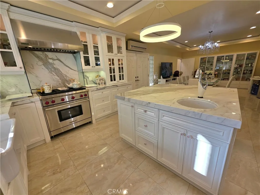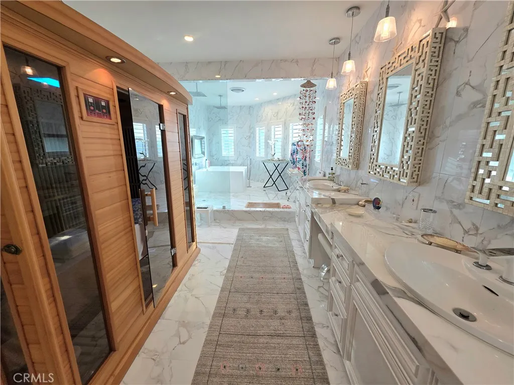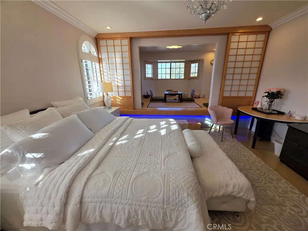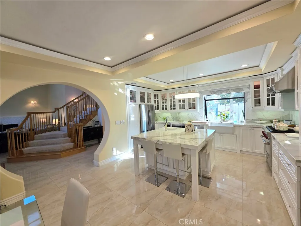 Stunning 5-Bedroom Estate with Garden Oasis and Dual Garages. One of the top world-renowned architects designed this custom home for a Life of luxury. Welcome to this extraordinary 5-bedroom, 4-bath home that exudes elegance and comfort from the moment you enter. The grand foyer boasts 21-foot-high ceilings and a sweeping staircase adorned with an elegant chandelier, opening into a spacious living room featuring a marble fireplace. There is an abundance of natural light from the extra-tall custom dual-pane windows and beautiful bay windows in all the rooms, complemented by plantation shutters and a view of the garden. Step outside to a lush garden paradise with over 50 fruit and flower trees, including lemons, oranges, grapefruit, peaches, persimmons, guava, as well as a vegetable and herb garden—a true farm-to-table experience right in your backyard. Enjoy the best quality foods grown in a beautiful garden of flowers and fruit trees. Fresh Herbs and vegetables to live a healthier longer life. The gourmet chef kitchen has been fully remodeled with one of the most expensive marble from Italy. All appliances are included: a high-end Wolf range with a 5-burner stove, stainless hood, refrigerator, dishwasher, washer, and dryer—all included. There’s exquisite, expensive Italian marble, including White Statuario, in the kitchen and bathrooms, as well as on countertops, walls, backsplashes, and bathroom floors. There are 2 bedrooms and 2 bathrooms downstairs, and 2 bedrooms and 2 bathrooms upstairs, this home offers the perfect blend of functionality and privacy. Each spa-like bathroom is designed, like a 5-star hotel, with walk-in showers featuring multi-water jets, and a jacuzzi tub and bath with exquisite marble vanities. The sauna even features a private sauna for the ultimate relaxation. The 5th bedroom is a detached 2-car garage in the backyard, currently used as a mother-in-law’s quarter with its own entrance, which could be converted to an ADU. The property is fully gated, offering privacy and ample parking with a 2-car garage that faces the side rather than the street for extra privacy. There are 5 cars that could fit in front of the driveway, 2 cars fit behind the automatic iron gate. There is a second detached garage that could be turned into 2 ADUs, potentially for additional income and use as an Airbnb. This home combines luxury living, practicality, and the serenity of nature—all in one remarkable package.