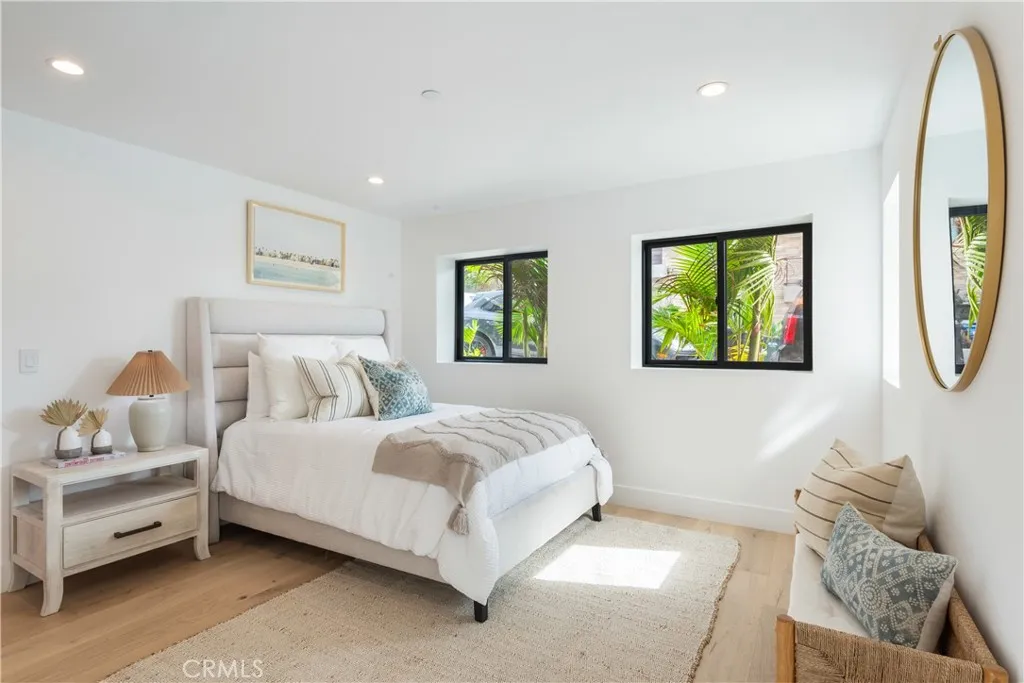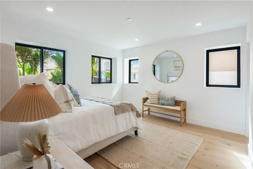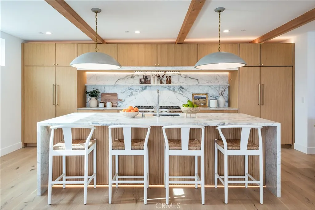 Brand New Construction. Coastal modern townhome offering 4 bedrooms and 4.5 baths across 2,675 square feet. Open-concept layout features 12-ft Fleetwood sliders, solid white oak floors, and Douglas fir beams. Chef’s kitchen includes 48″ Wolf range, Sub-Zero refrigeration, Bosch dishwasher, and 10-ft Arabescato Belgia marble island with ribbon lighting. Primary suite offers private balcony, Calcutta marble vanity, soaking tub, and glass walk-in shower with peekaboo ocean views. Smart home with Nest hub, Ring doorbell, Klipsch audio, Tesla Powerwall, six solar panels, and three-zone climate control. Includes wine closet, three-stop elevator, two tankless heaters, and architectural exterior lighting. Includes 3D walkthrough and video tour. 0.2 mi to Two Guns Espresso and Hi-Fi Espresso • 0.5 mi to Hermosa Beach Strand • Panoramic Queen’s Necklace views from rooftop deck with gas and water hookups • EV charger and solar energy.