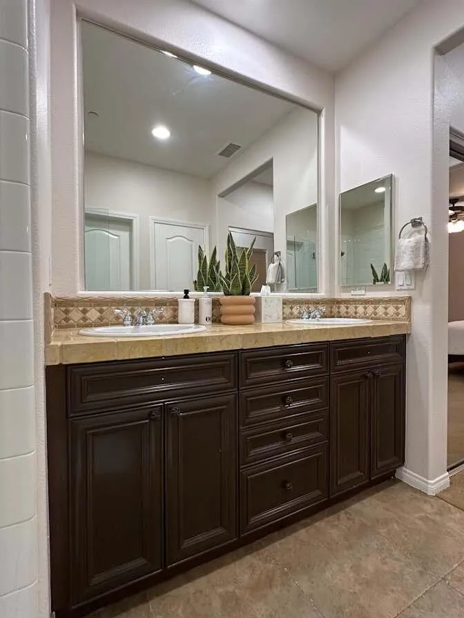 ROOM FOR RENT! The owner is renting one room. This room is perfect for traveling nurses, business professionals, or someone searching for the ideal room-away-from-home. Whether you need a short-term stay of 1 to 6 months or prefer something longer, this lease option is designed to give you comfort, convenience, and style all in one. Located in the heart of Palm Desert, near Eisenhower Medical Center, and a short drive to Desert Regional Medical Center, this property offers easy access to everyday essentials, including grocery stores, gas stations, restaurants, Costco, and Home Depot, with quick and convenient freeway access. Step inside and you’ll find an ultra-clean, fully furnished condo featuring stainless steel appliances, granite slab countertops, a breakfast bar, washer and dryer, pantry, cozy fireplace, and even garage parking. Nestled within the gated, upscale Brava community, you’ll also enjoy resort-style amenities, including a clubhouse, sparkling swimming pools, beautifully maintained grounds, and a nice private environment. Every detail has been thoughtfully designed to make your stay enjoyable and comfortable. You’ll love and appreciate the space and location from the very first day. Please call to inquire.