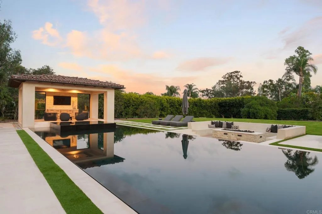 Step inside this extraordinary Rancho Santa Fe estate — a luxury showcase of architectural brilliance by renowned architect Mark Radford, with interiors curated by Susanne Bacino of Atmosphere’s Inc. and built by master craftsman Josh Herbst of Herbst Construction. Every detail has been designed with purpose, precision, and timeless sophistication. A striking tumbled stone façade sets the tone for what lies within. A resort-style vanishing edge pool by DeMaria Landtech seamlessly blends indoor and outdoor living, while the spa-inspired primary bath offers a steam shower, sauna, spa, and cold plunge — creating a true wellness sanctuary. A chef’s dream kitchen features a 48” Hestan Range, Gaggenau refrigeration, and Antolini Italian marble counters. Every finish exudes luxury — from hand-polished gun metal sinks and Stone Forest carved marble basins to imported wide-plank French oak floors and natural limestone. No surface is ordinary — fluted marble, Onice Ivory Onyx, Dolomite, and Mystery White Marble define the interiors. Custom fireplaces, Ashley Norton hardware, and handcrafted rift white oak cabinetry elevate each space with understated sophistication. Designer Visual Comfort lighting, a fully integrated Lutron system, and Phillip Jeffries wallcoverings create ambiance throughout. Custom furniture, luxe rugs, and outdoor living by Harbour Outdoor & Tucci complete the artful composition.
