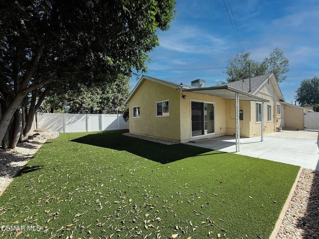 Seller is offering a $10,000 CREDIT TO THE BUYER! Step into this beautifully remodeled single-story home featuring 3 spacious bedrooms and versatile living spaces designed for today’s lifestyle. Two large flex areas provide endless possibilities–whether you’re envisioning a family room, entertainment lounge, den, or even a potential 4th bedroom. The dining area flows seamlessly from the kitchen into the living spaces, making everyday living and entertaining a breeze. The kitchen boasts granite counters, bright natural light, and brand-new appliances, while new laminate flooring throughout contrasts elegantly against crisp white walls and baseboards. One bedroom offers a convenient en-suite layout with dual entrances–ideal for a home office or guest retreat. Down the hall, you’ll find another guest bedroom and the primary suite, each with ample closet space, complete with double-shelf organizers for maximum storage. A dedicated laundry room is thoughtfully positioned just off the kitchen and garage, complete with a new stacked washer/dryer unit. Outdoors, the property truly shines. The backyard is a massive, private retreat perfect for entertaining, kids at play, or simply relaxing under the California sun. Freshly installed artificial turf in both front and back yards ensures year-round beauty with minimal maintenance. On the side, a wide, secured area with new vinyl fencing and gates offers incredible flexibility for boat or RV parking, extra storage, or a hobby space. The sprawling front yard, oversized lawn, and expansive driveway provide even more functionality and curb appeal. Inside and out, this home is move-in ready and filled with thoughtful updates. A must-see opportunity you won’t want to miss!