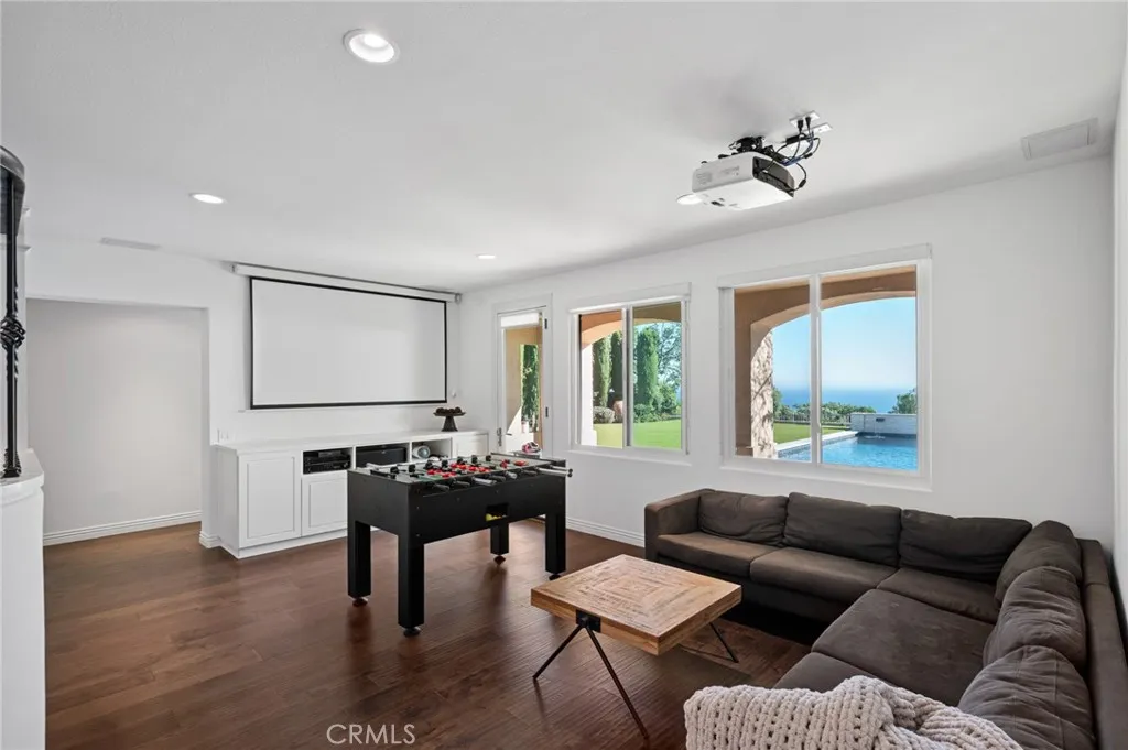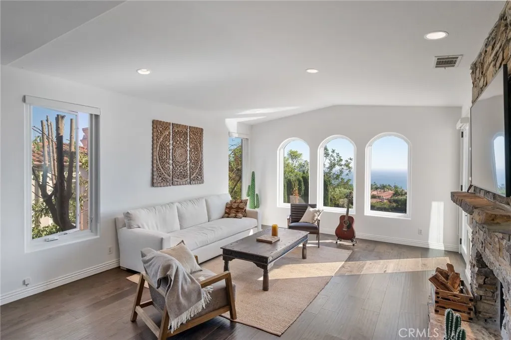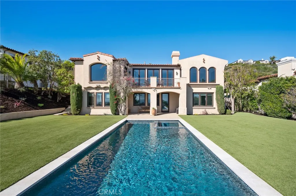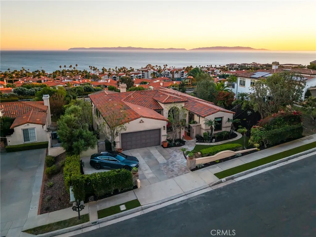 Perched above the Terranea Resort, this exquisite former model home captures breathtaking ocean and Catalina views from nearly every room. A tranquil courtyard and fountain welcome you into a bright, elegant interior where brand new windows and doors frame the stunning coastal panorama. The open living and family rooms extend to an expansive balcony, perfect for enjoying the sea breeze and endless views. The gourmet kitchen is a showpiece, featuring granite countertops, a large island, new stainless steel appliances, and a sunny breakfast area. The formal dining room shines with a coffered ceiling and chandelier, while the living room’s custom stone fireplace and wet bar create a warm, refined ambiance. The main-level primary suite offers a serene retreat with ocean views and a recently renovated spa-inspired bath complete with a tub, separate vanity sinks, and walk-in shower. A stately office opens to the front courtyard, and a stylish powder room completes the upper level. Downstairs includes two bedroom suites, plus two additional bedrooms with a Jack-and-Jill bath, a spacious family room, dedicated laundry room, and wine cellar. Outdoors, enjoy brand new landscaping, a turf backyard, and a sparkling new saltwater pool—all set against the gorgeous ocean and Catalina backdrop, perfect for entertaining or relaxing in luxury. Additional highlights include a brand new HVAC system, hardwood floors, wrought iron accents, and Tuscan-inspired finishes that blend timeless elegance with modern comfort. Conveniently close to top-rated PV schools, shops, and the coast.