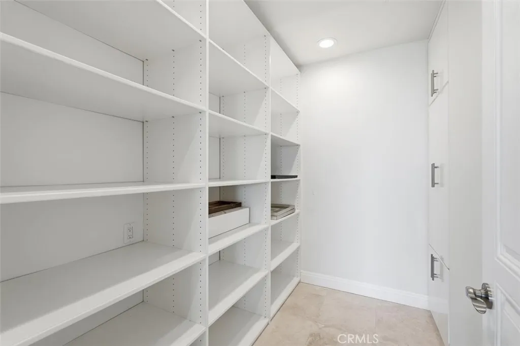 The kitchen was designed for those who love to cook, host, and gather. Outfitted with premium Thermador appliances, dual dishwashers, under-cabinet wine refrigeration, and a walk-in pantry with extra pull-out storage, it blends beauty with function. Shaker cabinetry and natural stone counters tie it all together, leading to a living area anchored by a sleek modern fireplace—where evenings unfold with the distant glow of city lights as your backdrop.