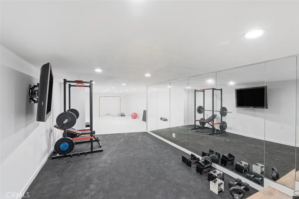 Smart-home features include dual-zone Nest climate control and a Ring doorbell system. The three-car garage with workshop provides direct access to the kitchen, plus ample additional parking. Beneath it all, a partially finished bonus area—currently used as a gym—offers even more potential. With its generous dimensions and separate access, it could easily evolve into an expanded living space, studio, or ADU.