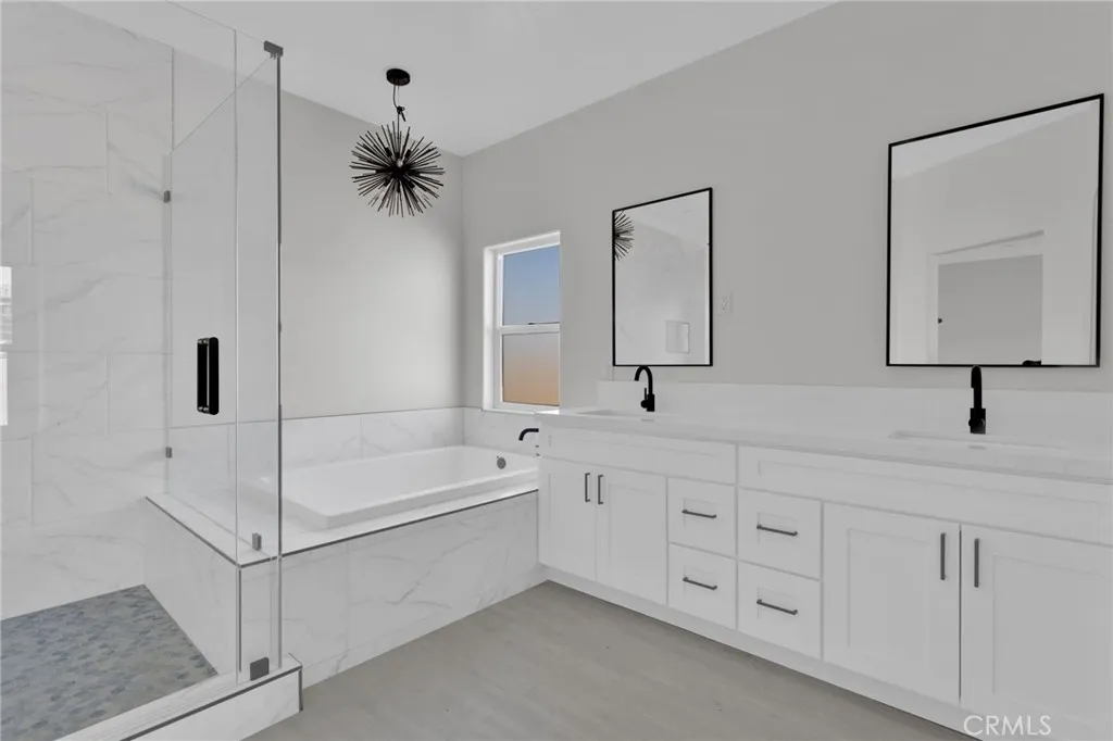 NEW CONSTRUCTION! This BEAUTIFUL 4 bedroom 3.5 bathroom contemporary split floorpan home features an open concept with MASSIVE living area open to the kitchen, 2 master suites, VIEWS OF THE WHOLE VALLEY from this FLAT CORNER LOT and so much MORE! The spacious kitchen features a large center island, quartz counters, pendant and under cabinet lighting, soft close cabinets and drawers, breakfast nook, walk in pantry, double oven and is open to the living space which boasts high ceilings, modern fireplace, recessed lighting, and wood-look tile flooring. The 2 master suites each have large en-suite bathrooms with custom walk in showers with frameless glass enclosures, dual vanities, and HUGE walk in closets. The main master also features a large soaking tub. This ENERGY EFFICIENT home includes OWNED SOLAR, tankless water heater, low-E windows, and Energy Star appliances. The oversized 3 car garage provides plenty of space for your toys! Additional features of this HIGH QUALITY home include full-width covered back patio, indoor laundry / mud room, with utility sink and 1/2 bathroom, and tons of storage. Quality and attention to every detail is evident throughout. This AMAZING home sits in one of the BEST NEIGHBORHOODS in Apple Valley and has VIEWS! This is truly a MUST SEE property!