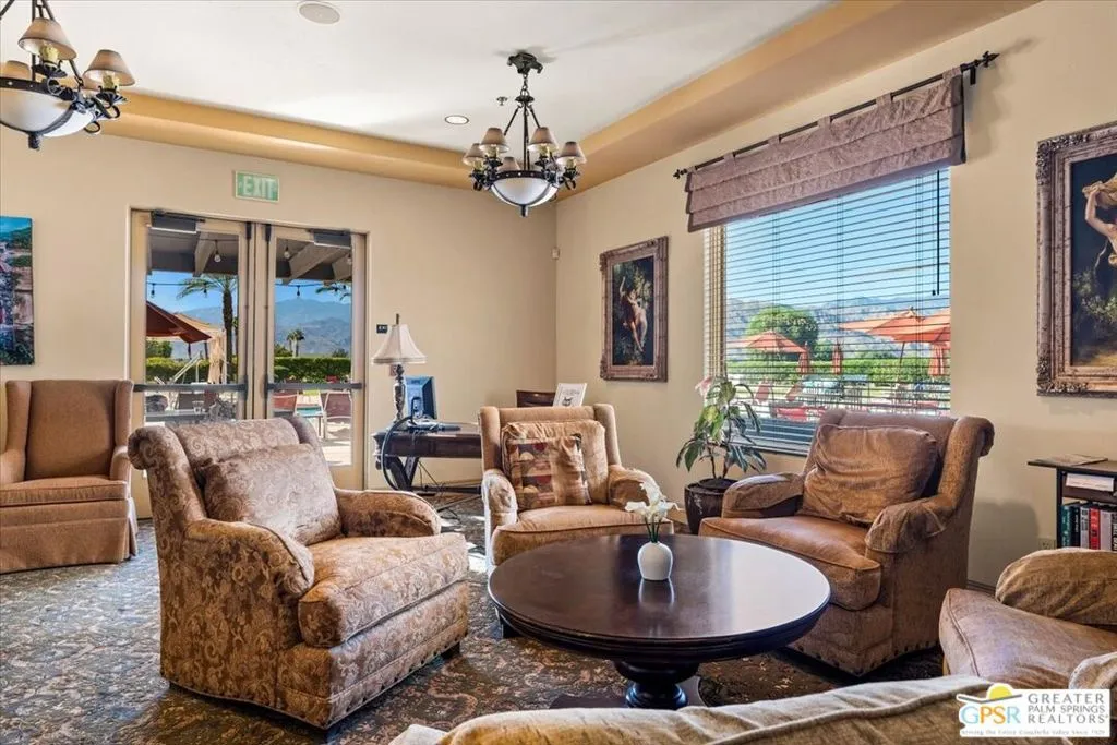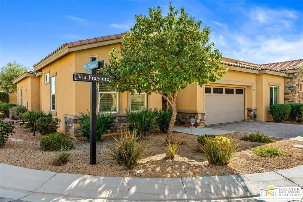 Welcome to this beautiful single-story home on a corner lot, built in 2015, located in Villa Portofino, an exceptional 55+ community in Palm Desert. Impeccably maintained by its current owners, this residence is offered turnkey furnished (excluding the empty second bedroom and artwork) and is move-in ready. The home features custom plantation shutters throughout, handsome carpeting in each bedroom, and attractive wood plank-style flooring in the main living areas, with porcelain tile in the bathrooms. The spacious primary bedroom offers private patio access and an elegant ensuite bath with a soaking tub, separate stall shower, dual vanity, and an expansive walk-in closet. Energy efficiency is enhanced by leased solar panels at just $37 per month. The HOA fee at Villa Portofino includes roof maintenance, insurance, TV and internet, trash service, and membership in the community’s private club. Residents enjoy resort-style amenities including a sparkling pool and spa, fitness center, billiards room, theater, numerous clubs and classes, and an on-site restaurant. Experience an unparalleled lifestyle. Villa Portofino living is truly second to none.