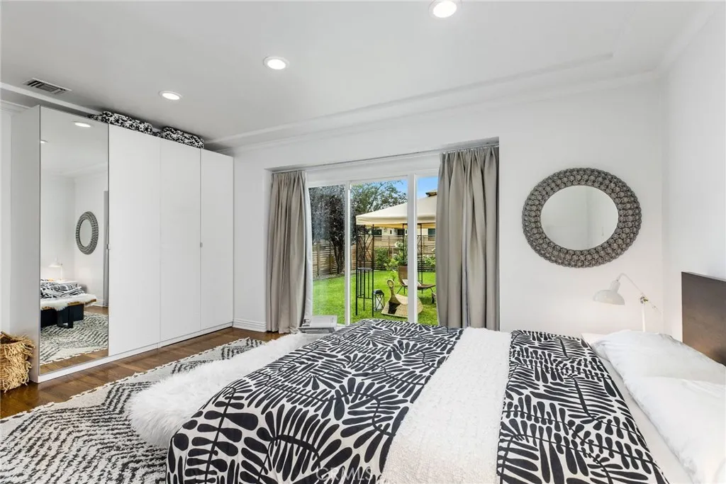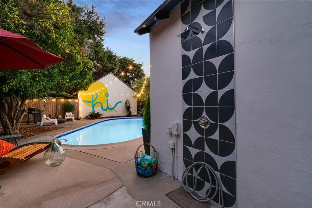 Multiple offers received, offer deadline is Monday 11/17 at 5 PM. A rare and exceptional find in Valley Village, this stunning 4-bedroom home, complete with an additional dedicated office, masterfully blends modern designer features with functionality. The natural, easy traffic flow guides you through the main floor and out to the beautifully landscaped yard and pool area. The versatile layout is perfect for someone looking to work-from-home or in need of many bedrooms. At the heart of the home is a newly renovated kitchen, featuring new walnut-finish cabinets, open shelving, a built-in banquette, and a convenient beverage bar in the dining area. Both bathrooms are fresh and modern; the shared bath boasts a stand-alone tub, a dual-sink floating vanity, and generous storage, while the primary suite’s bath is equally chic. The Primary Bedroom is a true sanctuary, highlighted by an eye-catching shiplap-covered fireplace and a sliding door leading to a private yard. Elegant wood floors are found throughout the residence and the living room features luxury vinyl. The backyard is an outdoor oasis and includes a beautiful swimming pool, complemented by new landscaping and a stylish outdoor shower with mid-century modern tile…ideal for outdoor entertaining and summer fun. This home offers unbeatable utility and savings, featuring a tankless hot water heater and a fully owned solar system. Practical amenities include central A/C, dedicated laundry, and excellent parking with a 4-car driveway and a 2-car garage. Close to houses of worship.