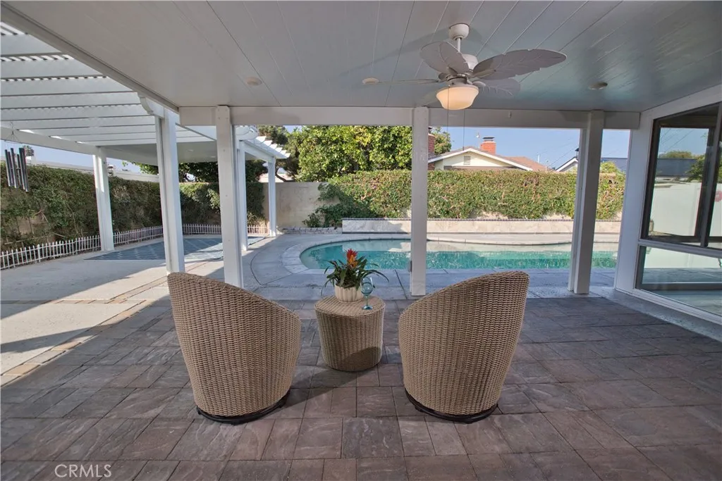 GREAT OPEN FLOORPLAN!! THIS IS IT!! OVERSIZED SPRAWLING CORNER LOT! FUN & FABULOUS INSIDE TRACT POOL HOME IN HIGHLY DESIRABLE BOLSA PARK NEIGHBORHOOD! This CLEAN, warm and well-loved entertainer’s home waits for you! Happily situated on a MASSIVE, 7,490′ square foot lot, this beautiful 1,268 sq ft (per public records) single level home includes 3 bedrooms, 2 baths, PLUS AN IMMENSE (PERMITTED) 420 SQ FT ARIZONA PATIO ROOM off the living room–FOR 1,688 SQUARE FEET OF LIVING SPACE! Your warm welcome home begins at the curb. Just up the LONG, LONG, COVERED DRIVEWAY with the full-size (PERMITTED) AlumaWood awning, entrance to this excellent home is via the covered front porch that opens to the entry foyer. GREAT OPEN FLOORPLAN! This chef’s kitchen featuring sleek stainless countertops is open to the living / dining rooms and wall of windows plus sliding door views to the huge enclosed patio room overlooking the sparkling pool and spa. FUN and fabulous, PRIVATE, peaceful and relaxing, the delightful show-stopping backyard features covered patio areas AND BOAT/RV PARKING that’s possible on the side yard! Other wonderful features include: NEW (OCTOBER 2025) TANKLESS WATER HEATER, dual pane windows throughout, forced air heating and AC, recessed lighting, ceiling fans, upgraded bathrooms, and GORGEOUS engineered hardwood flooring flowing throughout this wonderful home. Direct access to the FINISHED garage is just off the laundry room. In addition to the 3 bedrooms, a portion of the garage space was repurposed so that the home has an additional room with window and ventilation off the laundry room that makes a great office/den/or playroom? and that phenomenal great room with 2 sliding doors to the spacious patio, backyard and POOL! This inviting and comfortable home will surprise you. A hop, skip and jump to Excellent Schroeder Elementary and Stacey Middle Schools. You will truly LOVE this home!