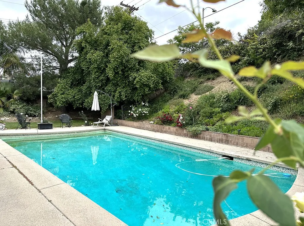 Enjoy this open, airy floor plan with oversized windows welcoming in plenty of natural light. Charming French doors throughout lead to an entertainer’s backyard with lush, vibrant landscape, a sparkling 721 sq. ft. pool, and covered patio. The newly remodeled kitchen boasts custom cabinetry, crown molding, granite countertops, oversized apron sink, gorgeous hardware, new stainless steel oven, stove top, and hood. The living room, overlooking the beautiful hillside and pool, showcases a marble fireplace framed with custom built-ins and recessed lighting, cleverly hiding an oversized flat-screen TV. Recessed lighting in the living room cabinetry and custom glass hall display cabinets connect with Hubspace App for automated lighting schedules. Elegant crown molding continues throughout. This bright and open, airy concept continues with beautifully remodeled bathrooms with upgraded plumbing. Generously sized bedrooms, walk-in closets, and new hardwood veneer floors. The entire home has been freshly painted inside and out. Outdoor ADT security cameras surround the property offering peace of mind. The list goes on with all attention to detail. Don’t miss your chance to make this your dream home!