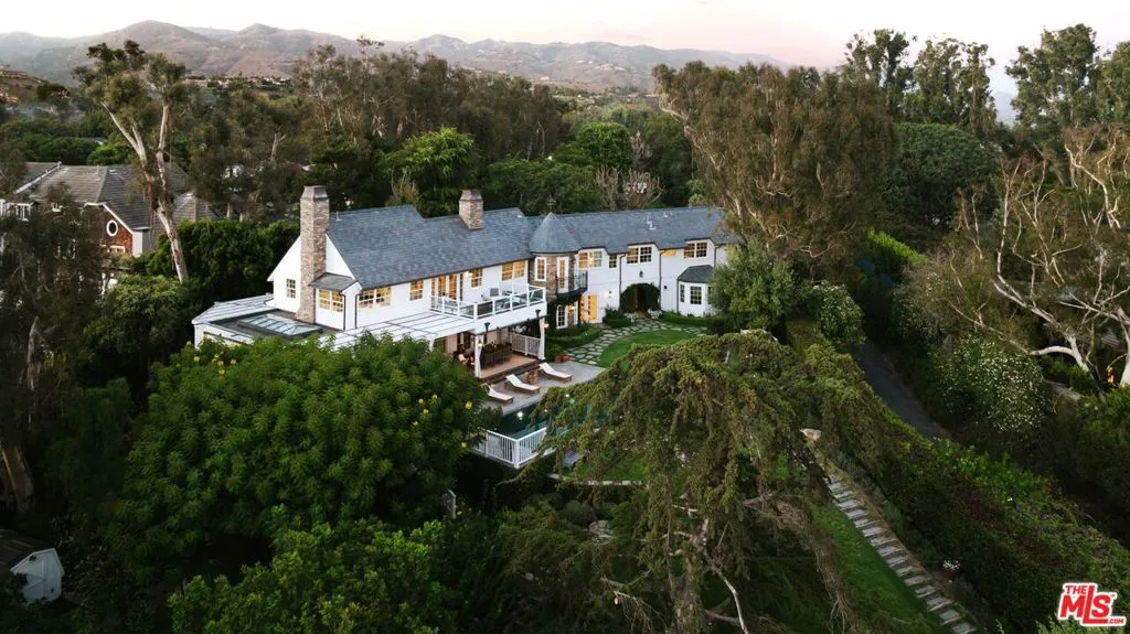 Nestled at the pinnacle of Point Dume’s most coveted street lies this extraordinary private estate. Secluded behind gates, atop a majestic ocean bluff, architect Peter Choate’s masterful design reveals a seven-bedroom, six-bathroom residence on 1.5+ acres. With pristine beauty this unparalleled sanctuary boasts orchards, gardens, a pool, and a private door to exclusive Little Dume Beach Access. Upon arrival, guests are greeted by majestic coral trees and cascading bougainvillea leading to the 100-foot driveway, lined with mature eucalyptus trees and pots of illuminated white roses, with a bridge over babbling brooks and serene ponds. The farmhouse-inspired facade in fresh white, complemented by a slate tile roof and copper accents, exudes elegance. Inside, panoramic views of the ocean, Catalina Island, and lush orchards captivate. Oak wood floors and French doors enhance the seamless indoor-outdoor lifestyle. The chef’s kitchen dazzles with white cabinetry, a Wolf six-burner range, Sub-Zero refrigerator, wine refrigerator, and honed Calcutta marble countertops. Nautical-inspired brass fixtures illuminate the space, complementing a charming eat-in nook with a curved built-in bench. The gracious living room features a wood-burning fireplace and beamed ceilings, opening to an outdoor paradise. Manicured lawns, specimen trees, and landscaped orchards surround a pool, a bluestone gas firepit, with ocean-view decks that provide an idyllic setting for entertaining. Upstairs, the tranquil primary suite boasts dramatic ocean views, 11-foot ceilings with wood beams, and a gas fireplace. Four additional bedrooms offer unique features such as Juliet balconies and dormer windows, each capturing breathtaking vistas. This estate epitomizes the coveted Point Dume lifestyle, blending unparalleled luxury with natural beauty and exclusive amenities offering a rare opportunity to embrace coastal living at its finest. Additional highlights include a laundry room, guest suites with garden views, a sunlit conservatory and property generator. This rare wonderland promises an unparalleled Malibu experience.