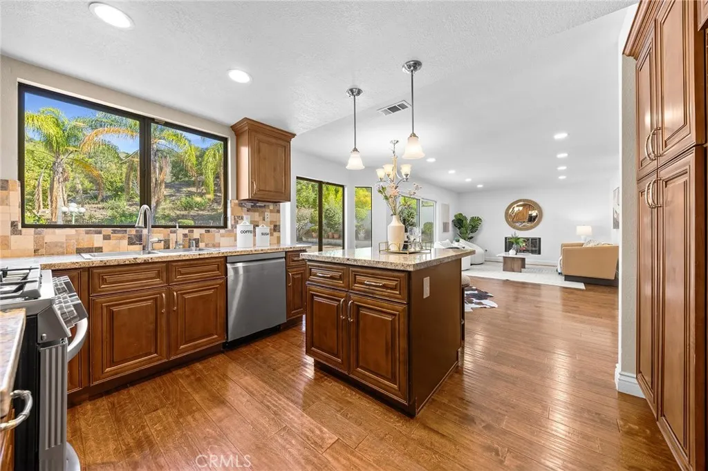 Step through the elegant double-door entry into a bright foyer with soaring ceilings and abundant natural light. The spacious formal living and dining rooms provide the perfect setting for gatherings and entertaining. The upgraded kitchen features granite countertops, a center island, stainless-steel appliances, and custom cabinetry, seamlessly connecting to a cozy family room with fireplace and wet bar.