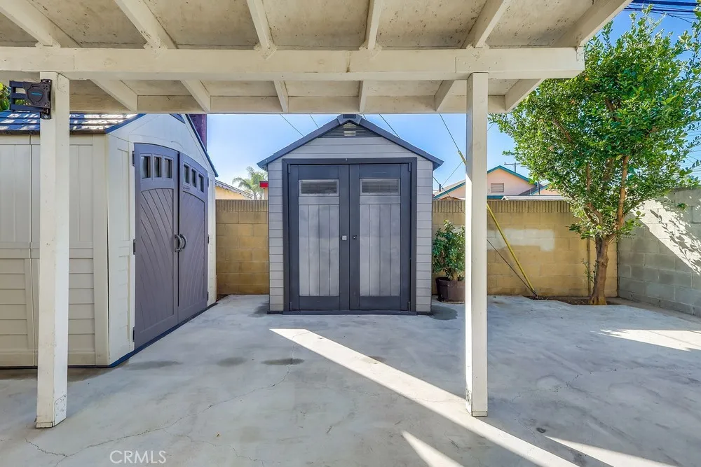 The low-maintenance exterior offers paved front and back yards, a covered patio, and two storage sheds. Enjoy direct garage access, drywalled garage walls, and driveway parking behind secure rolling gates.