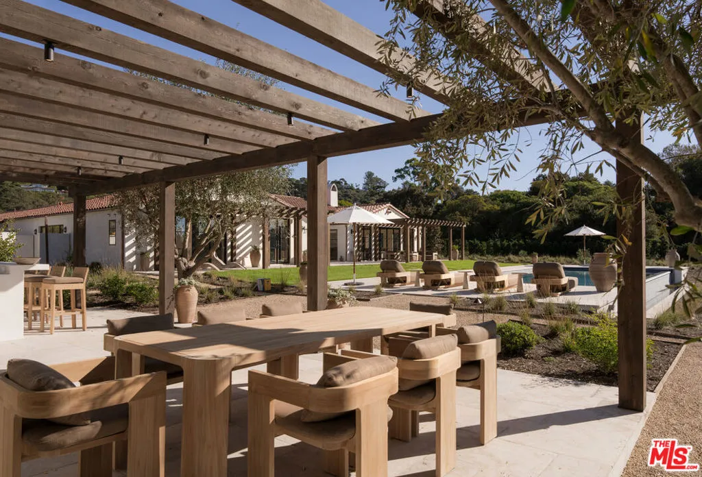 Along Hope Ranch’s famed Marina Drive, where the rolling hills meet the endless Pacific, lies a contemporary Mediterranean estate that captures the essence of luxurious CA coastal living. Set upon nearly 3.5 pristine acres, this architectural jewel commands sweeping ocean views, its presence both commanding & serene, a perfect harmony of elegance & natural beauty. The estate offers 4bd, 5ba in the main residence, complemented by a separate, private guest house complete with 2bd, 1ba, living room, kitchenette, home gym, & its own secluded terrace. The grounds include a sports court, fruit-laden orchards, & a pool bordered by lush landscaping that drifts effortlessly toward the Pacific. This expansive estate is created for those who cherish beauty, privacy, & effortless luxury. Inside, every element of the 5,557-square-foot residence reflects a meticulous dialogue between old-world craftsmanship and contemporary refinement. Sunlit spaces flow effortlessly between indoor and out, anchored by steel doors, custom white oak cabinetry, and Italian marble surfaces that whisper understated sophistication. Textured veneer plaster walls, hand-hewn beams, and bespoke fireplaces evoke a sense of warmth and authenticity, every detail thoughtfully composed, every material chosen with intention.The estate offers four bedrooms and five baths (three full, two half bathrooms) in the main residence, complemented by a separate guest house, a private haven complete with two bedrooms, one bath, living room, kitchenette, home gym, and its own secluded terrace.Outdoor living here transcends leisure to become an art form. The infinity-edge pool stretches toward the horizon, seamlessly merging with the Pacific beyond. Custom pergolas and a grand pavilion, outfitted with a fireplace, bar seating, full outdoor kitchen, and wood-burning pizza oven, create an idyllic setting for sophisticated entertaining beneath the Santa Barbara sun.The primary suite is a sanctuary of repose: bifold doors open to a tranquil garden, while the spa-inspired bath features a free-standing soaking tub, dual-head marble shower, and intelligent fixtures of the highest caliber. A custom white oak dressing room and adjoining courtyard spa, complete with copper outdoor shower and limestone flooring, elevate daily rituals into moments of quiet indulgence.Beyond the residence, the estate unfolds into a private world of recreation and natural splendor, a sports court, fruit-laden orchards, and a meadow bordered by lush landscaping that drifts effortlessly toward the ocean’s edge.This Hope Ranch masterpiece embodies modern Mediterranean grace, a symphony of architecture, craftsmanship, and setting, created for those who cherish beauty, privacy, and effortless luxury in one of Santa Barbara’s most coveted coastal enclaves.