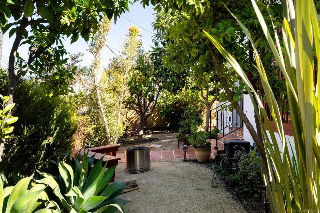 This beautifully updated Spanish Revival home in highly walkable North Park blends timeless character with thoughtful modern upgrades. The single-level floor plan includes two bedrooms and one full bathroom with a tub-shower, while a meticulously refinished detached flex space includes a Murphy bed, closet, and bonus full bath. Period details include stunning stained-glass windows, a graceful coved ceiling and rounded archway in the living room, a formal dining area, and original hardwood floors. Improvements bring contemporary comfort—smart home controls, a newer water heater, central AC, foundation and sewer upgrades, a water softener, added insulation, and a gorgeous kitchen renovation featuring new appliances, floor-to-ceiling cabinetry, a farmhouse sink, a custom laundry closet, and a breakfast bar. A powered vehicle gate provides secure off-street parking with plenty of yard space to spare, and a large storage shed offers ample room for bikes, tools, and more. Set on a corner lot with street and alley access for better separation from neighbors, it offers spacious front, side, and rear yards framed by mature landscaping and fruit trees. Fantastic location walkable to quality shops, restaurants, and cafes.