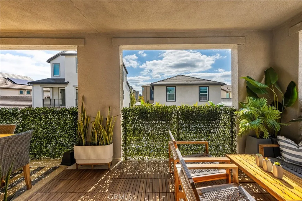 Welcome to 126 Sash, the best value condominium featuring one of the most sought after floor plans in Irvine’s vibrant Great Park community. This contemporary tri-level home blends modern design with functional living, offering approximately 2,147 sq ft with 3 bedrooms and 3.5 bathrooms. The spacious open concept kitchen and living area is perfect for entertaining, highlighted by a large quartz island and smart stainless steel appliances. Enjoy indoor-outdoor living with a generous balcony off the living space, ideal for relaxing or entertaining. A private first floor bedroom with en-suite bath is perfect for guests or multigenerational living, while the third level features the primary suite with walk-in closet, oversized shower and a soaking tub. A secondary bedroom with full bath, and a convenient laundry room complete the upper floor. Additional upgrades include whole-home water filtration, a Ring security system, custom top- down bottom-up cellular shades, and leased solar panels for added efficiency. Enjoy resort-style amenities including a park, pools, fire-pit and a BBQ area— all with only one low HOA dues and access to award winning Irvine Unified schools, including Portola High School and Solis Park K-8. Don’t miss this rare opportunity to own a stunning modern home in one of Irvine’s most desirable communities.