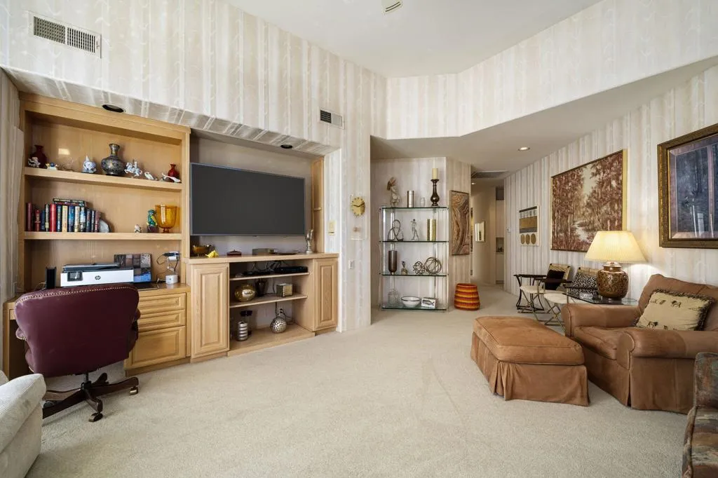 Spectacular South Facing Mountain, Fairway, and Lake Views highlight this beautifully furnished golf course home at one of Indian Wells’ most desirable addresses.Perfectly situated to capture sweeping vistas of the lush greens and tranquil water features, this residence embodies the best of desert resort living.The sought-after Doral floor plan offers a seamless open-concept design ideal for entertaining and everyday comfort. At the heart of the home, a dramatic double-sided fireplace serves as a shared focal point between the spacious Living Room and inviting Family Room, creating warmth and elegance throughout.A Chef’s Kitchen anchors the living space with granite countertops, rich custom cabinetry, stainless appliances, and a charming breakfast nook overlooking the golf course. The Primary Suite is a luxurious retreat, featuring a spa-inspired bath with dual vanities, soaking tub, separate shower, and an expansive walk-in closet. Guests will appreciate the private second bedroom with en-suite bath and third bedroom. This floor plan includes a den that offers custom built-ins and flexibility for an office, media room, or creative studio.Step outside to your private patio oasis, where the panoramic mountain and lake views take center stage. It’s the perfect spot to enjoy morning coffee, afternoon gatherings, or breathtaking evening sunsets over the Santa Rosa Mountains.Additional highlights include a two-car garage plus a dedicated golf cart garage, providing ample space for storage and convenience. A community pool and spa are just steps away, adding to the easy-care resort lifestyle.Located within the renovated Desert Horizons Country Club, residents enjoy access to world-class amenities — a private 18-hole golf course, newly updated Fitness Center, elegant Clubhouse dining, and the state-of-the-art Courts Pavilion with pickleball, tennis, and bocce.This home captures the essence of luxury desert living — refined, relaxed, and set against one of the most captivating backdrops in Indian Wells. Whether as a full-time residence or seasonal retreat, this property offers an exceptional combination of comfort, style, and location.Experience the lifestyle where every day feels like a getaway. Welcome to Desert Horizons Country Club — and welcome home.