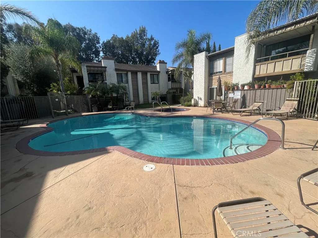 Each bathroom has been tastefully renovated, featuring elegant fixtures and a refined modern aesthetic. Everyday convenience is elevated with in-unit laundry hookups, a NAVIEN tankless water heater, and a brand-new washer and dryer. The primary suite is spacious and serene, offering a professionally designed three-door closet and sound-reducing windows for added comfort. Enjoy cozy evenings by the charming fireplace or step outside to your private patio—a perfect spot for relaxation or morning coffee. Additional highlights include central air conditioning, ground-level access (no stairs), and two tandem parking spaces. Set within a beautifully maintained, gated community, residents can enjoy lush landscaped grounds, walking paths lined with fruit trees, and a sparkling pool and hot tub—a true resort-style oasis that welcomes you home. Ideally located in desirable Van Nuys, just minutes from the 405 freeway, shopping, dining, and entertainment, this property offers an exceptional combination of style, comfort, and convenience.