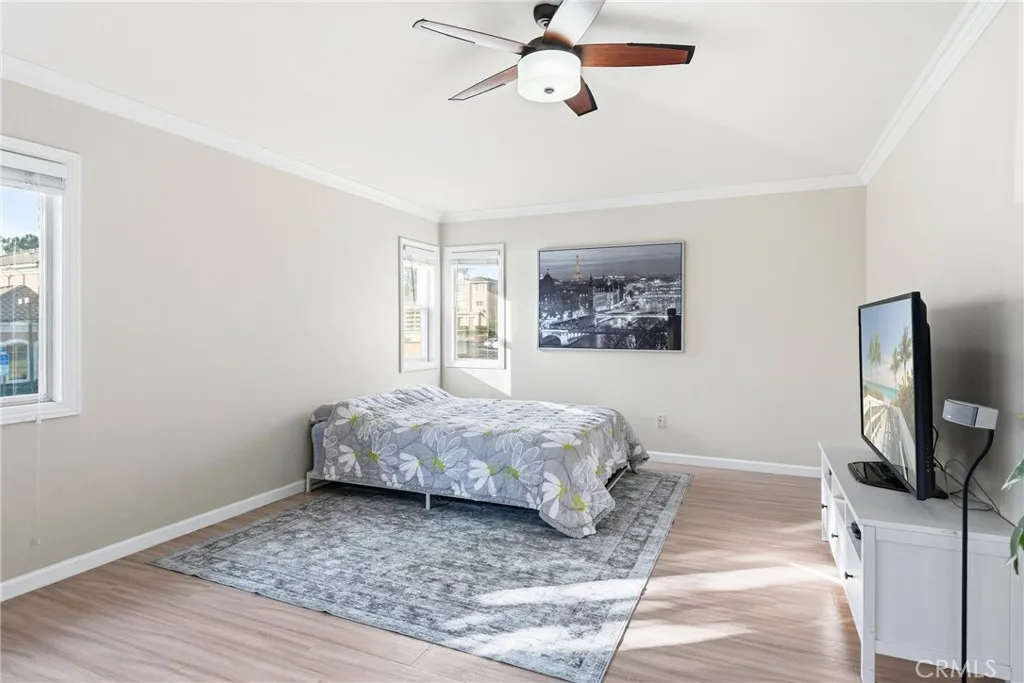 Discover modern coastal living in this beautifully maintained detached home located within 24-hour guard-gated Harbor Village community. Just minutes from the ocean, shopping, and freeway access. This light-filled two-story residence showcases soaring foyer ceilings, sleek laminate wood flooring, and an open, airy floor plan designed for today’s lifestyle.