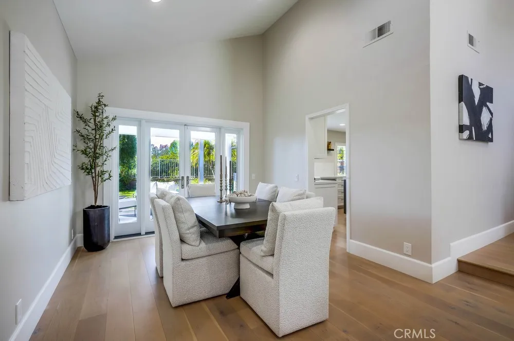 Beautifully updated and remodeled home ideally located on a family friendly cul-de-sac street with no one behind or in front in the desirable Mariposa community. Step inside the new custom front door and soak in the light filled interior with soaring two story ceilings, large bay windows, plantation shutters, recessed lighting, upgraded Milgard windows and French doors, and gorgeous wide plank wood floors setting the stage for a fantastic living environment. The living room is open to the large dining room with French doors opening to the back patio creating an ideal indoor-outdoor gathering space. The spectacular kitchen has been completely remodeled with beautiful white cabinetry, sparkling Quartz countertops, a large apron-front farm sink, new stainless-steel appliances, subway tile backsplash, wine fridge, glass display cabinets, lovely picture window overlooking the backyard, a large center prep island, and a sunny breakfast nook. The separate family room is a welcoming gathering space in front of the cozy fireplace with French doors opening to the back patio perfect for entertaining. The main level includes a beautifully updated powder room and a dedicated laundry closet with full size appliance hookups and linen cupboards. Travel up the light filled staircase with updated wooden banisters to the second level where a skylight fills the upstairs landing with natural light over a nook perfect for a work/study space. Pass through a double door entry into the expansive Primary bedroom suite with vaulted ceilings and sliders opening to a private balcony with serene views. A perfect space for enjoying the views with an evening glass of wine. The primary bathroom boasts marble tile floors, a vaulted ceiling, a dual vanity with custom cabinetry, soaking tub, an oversized step-in shower, new toilet, and two closets with built-in custom organizers including a prized walk-in closet. The 4th Bedroom with an existing closet is currently used as the Primary Bedroom Retreat but could easily be converted to an executive home office, media room, or bedroom. The spacious backyard is a private oasis with two covered patio seating areas and a large grassy lawn, a haven for relaxing with loved ones. Within walking distance of Pittsford Park with community events & concerts, playground, volleyball, and tennis courts. Close to local schools, shopping, dining, hiking and biking trails, and Lake Forest Sports Park. Easy Toll Road and 5 Frwy access.